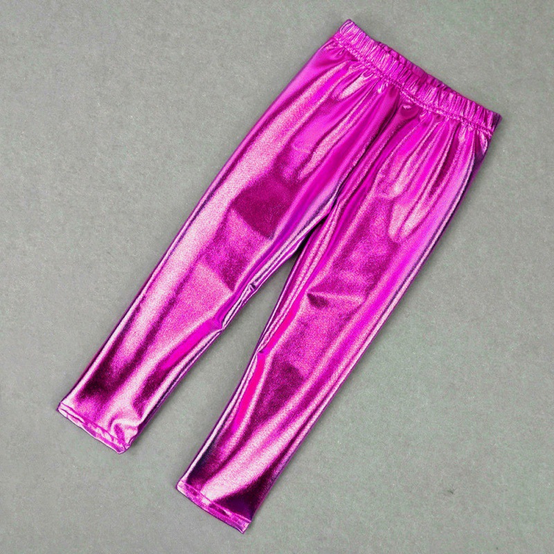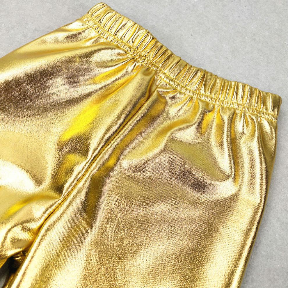 Girls' Fashion Elastic Waist Trim Shiny Hot Gold Pants