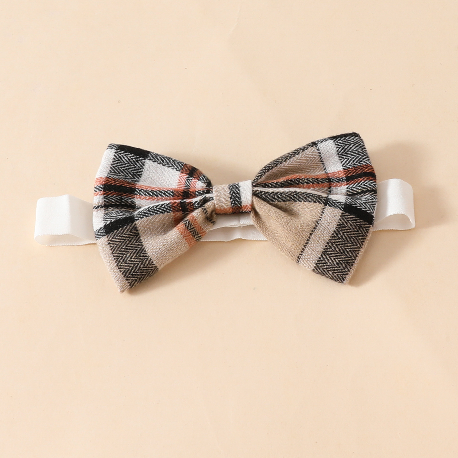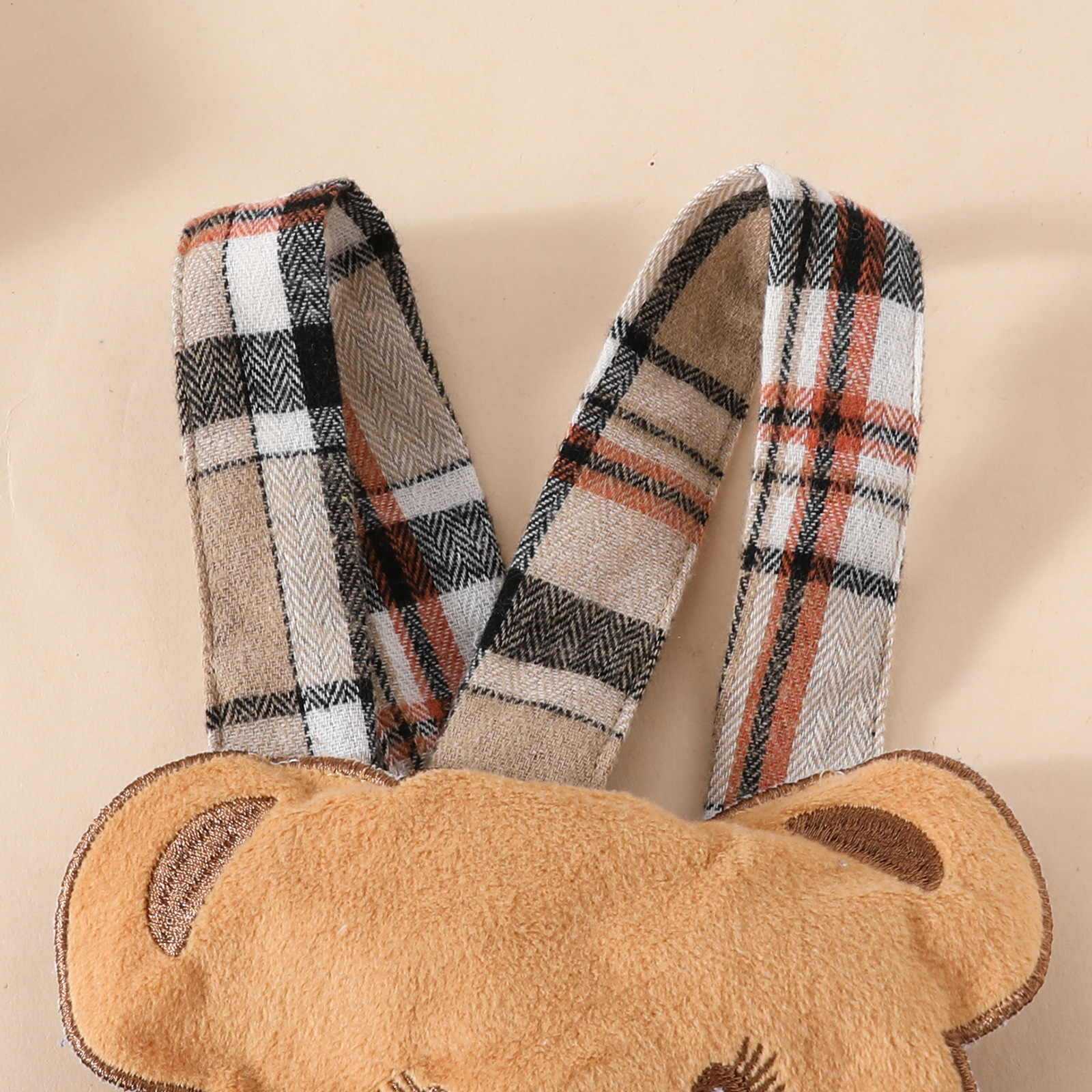 Girls' Fashion Minimalist Long Sleeve Triangle Rompers Bow Plaid Bear Doll Suspender Dress Hair Band Set
