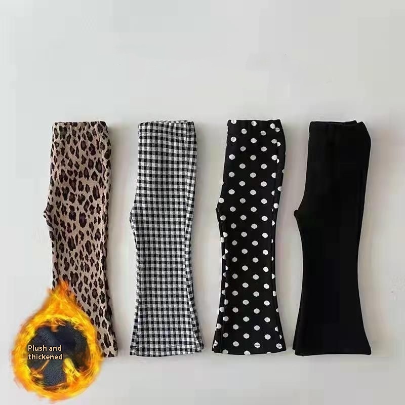 Color: Plaid Bell-bottom pants [thin section], leopard print Bell-bottom pants [thin section], dot bell-bottom pants [thin section], pure black bell-bottom pants [thin section], plaid Bell-bottom pants [Velvet], leopard print Bell-bottom pants [Velvet], dot Bell-bottom pants [Velvet], pure black bell-bottom pants [Velvet]