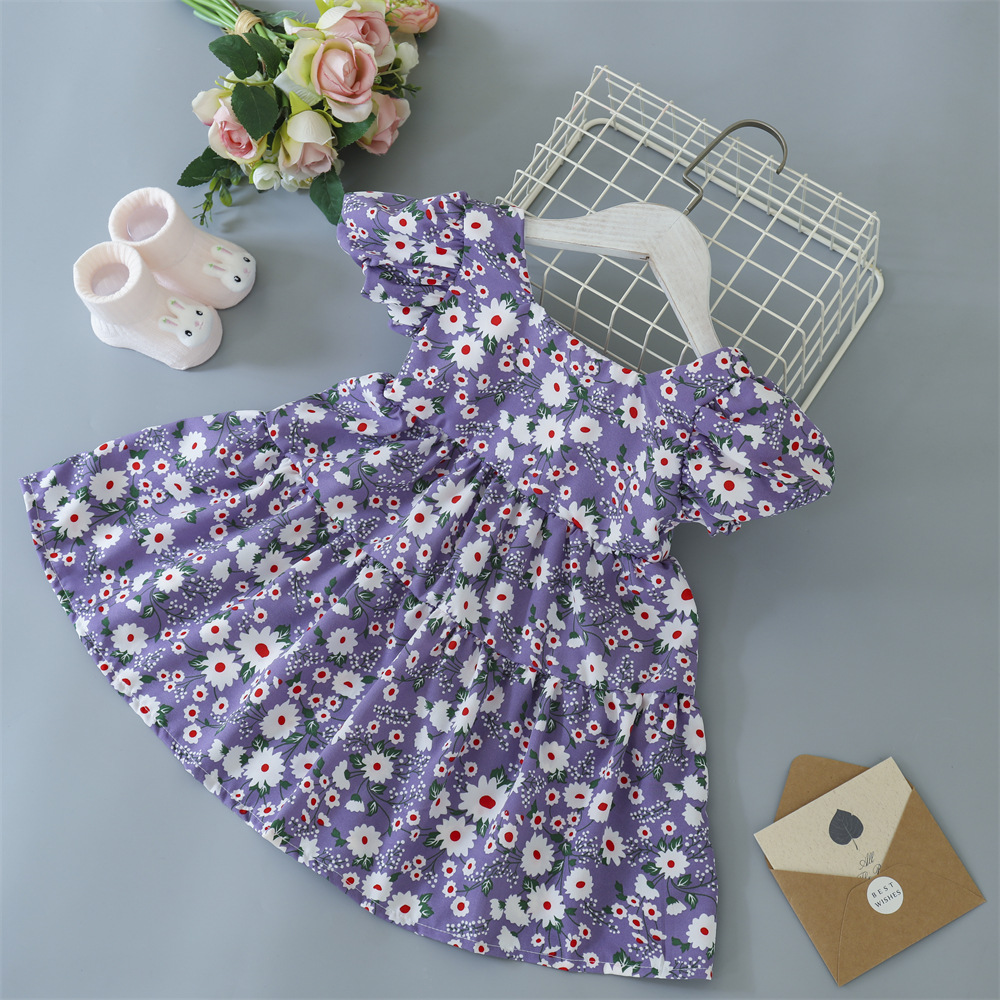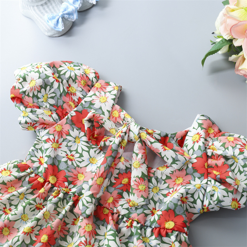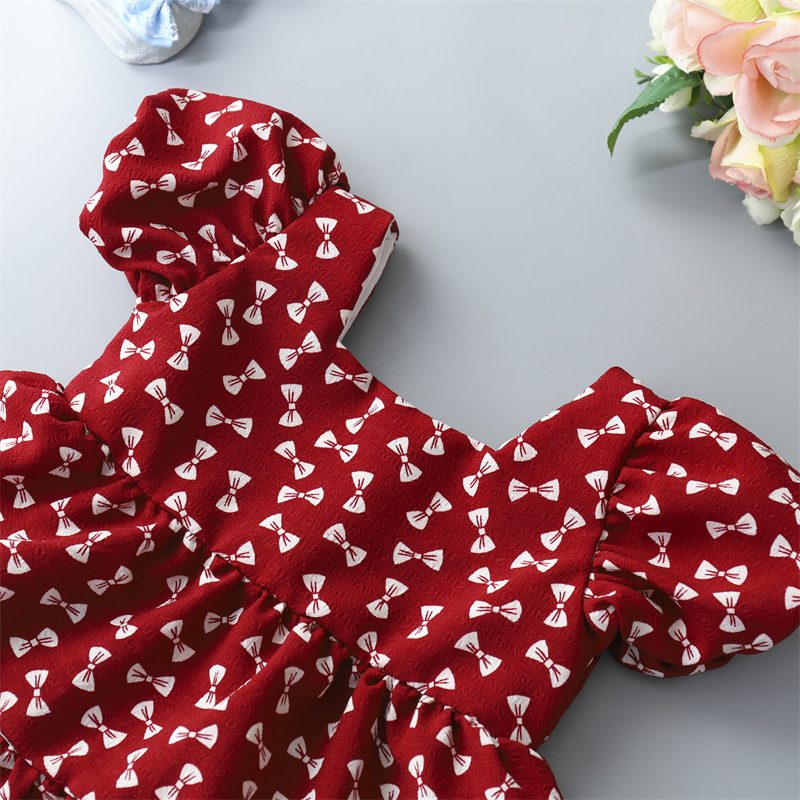 Girls' Floral Dress Children's Princess Bowknot Skirt