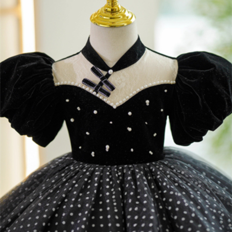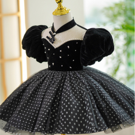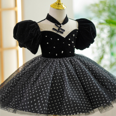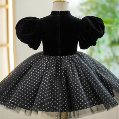 Girl's Flounced Sleeve Dot Mesh Princess Dress