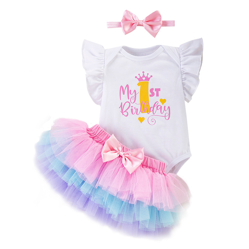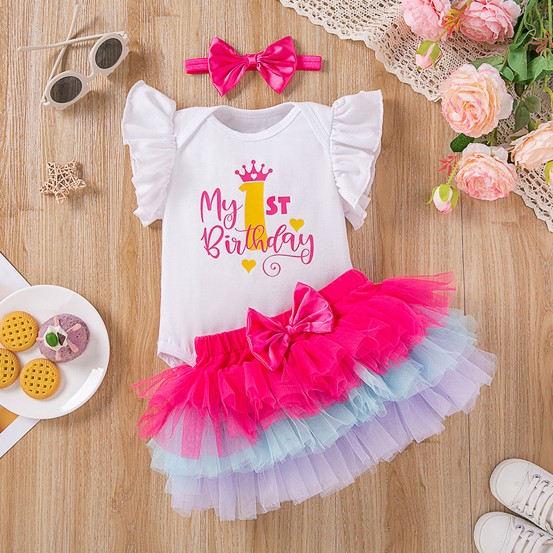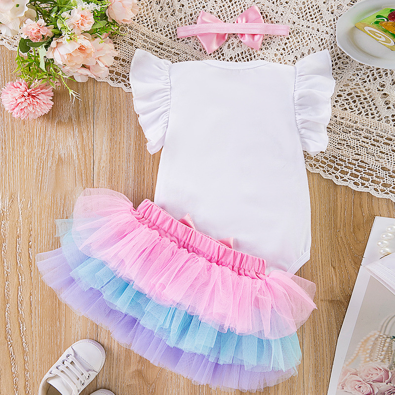 Girls' Flounced Sleeve Fluffy Six-layer Three-piece Suit