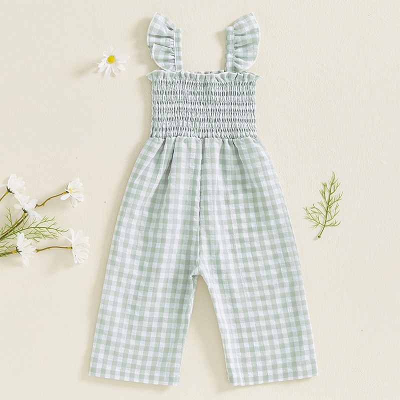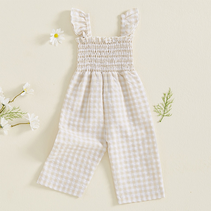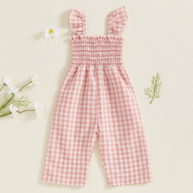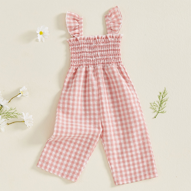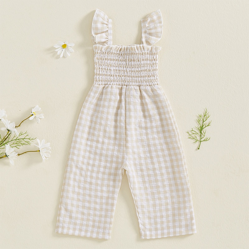 Girls Flying Sleeve Loose Smocking Suspenders