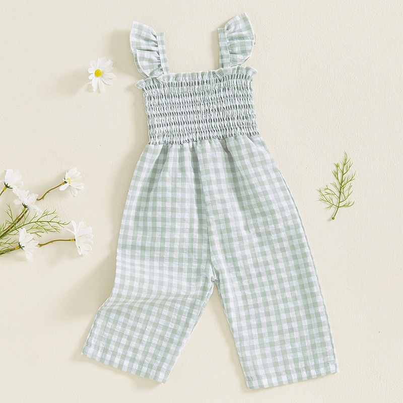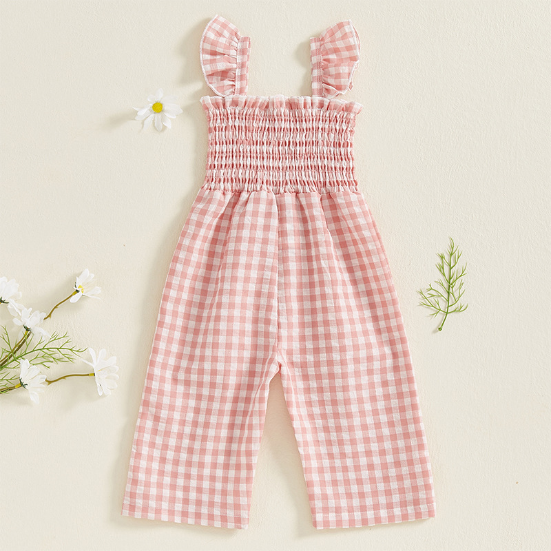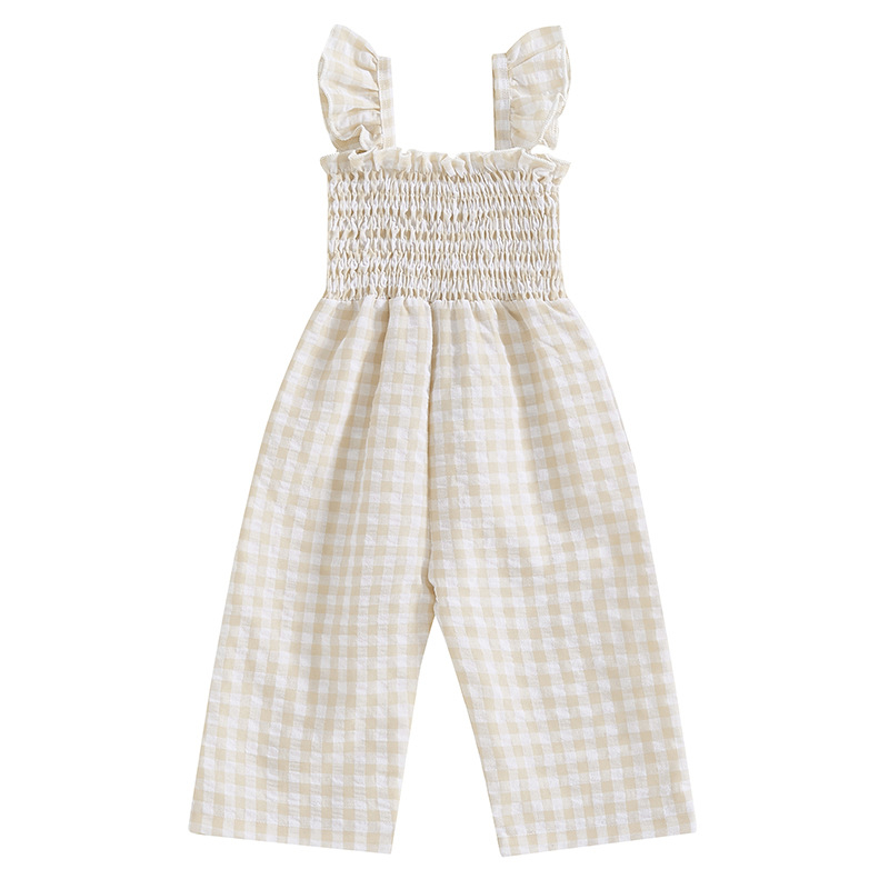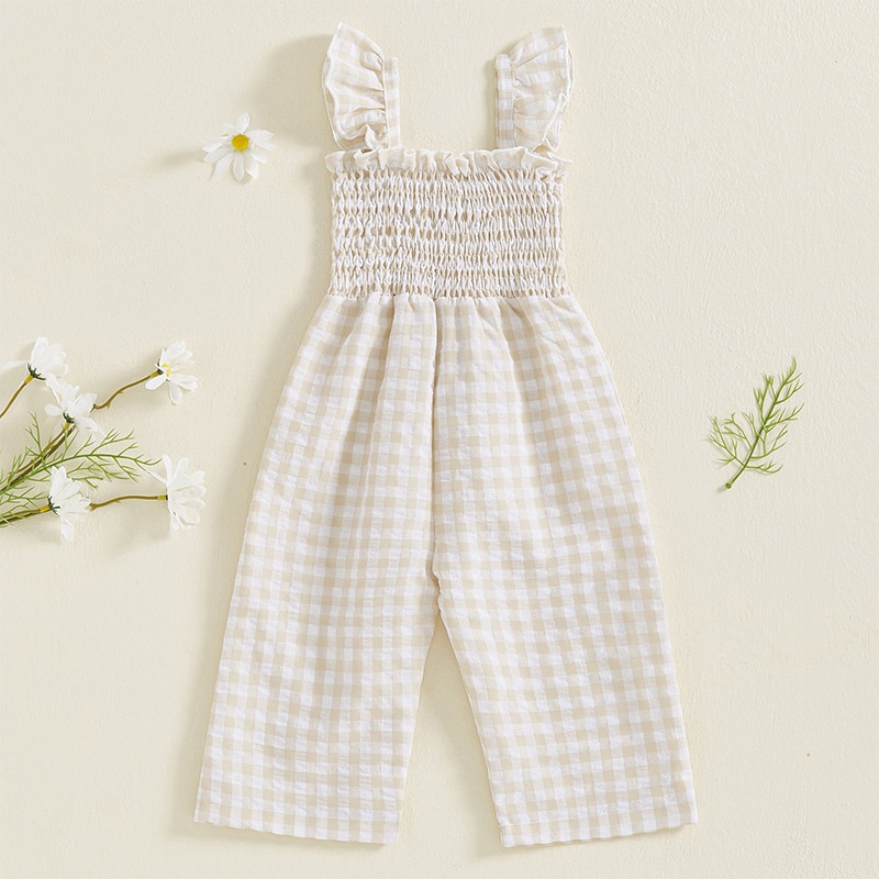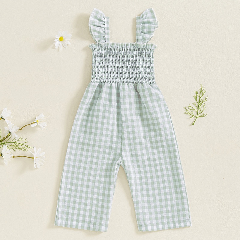 Girls Flying Sleeve Loose Smocking Suspenders