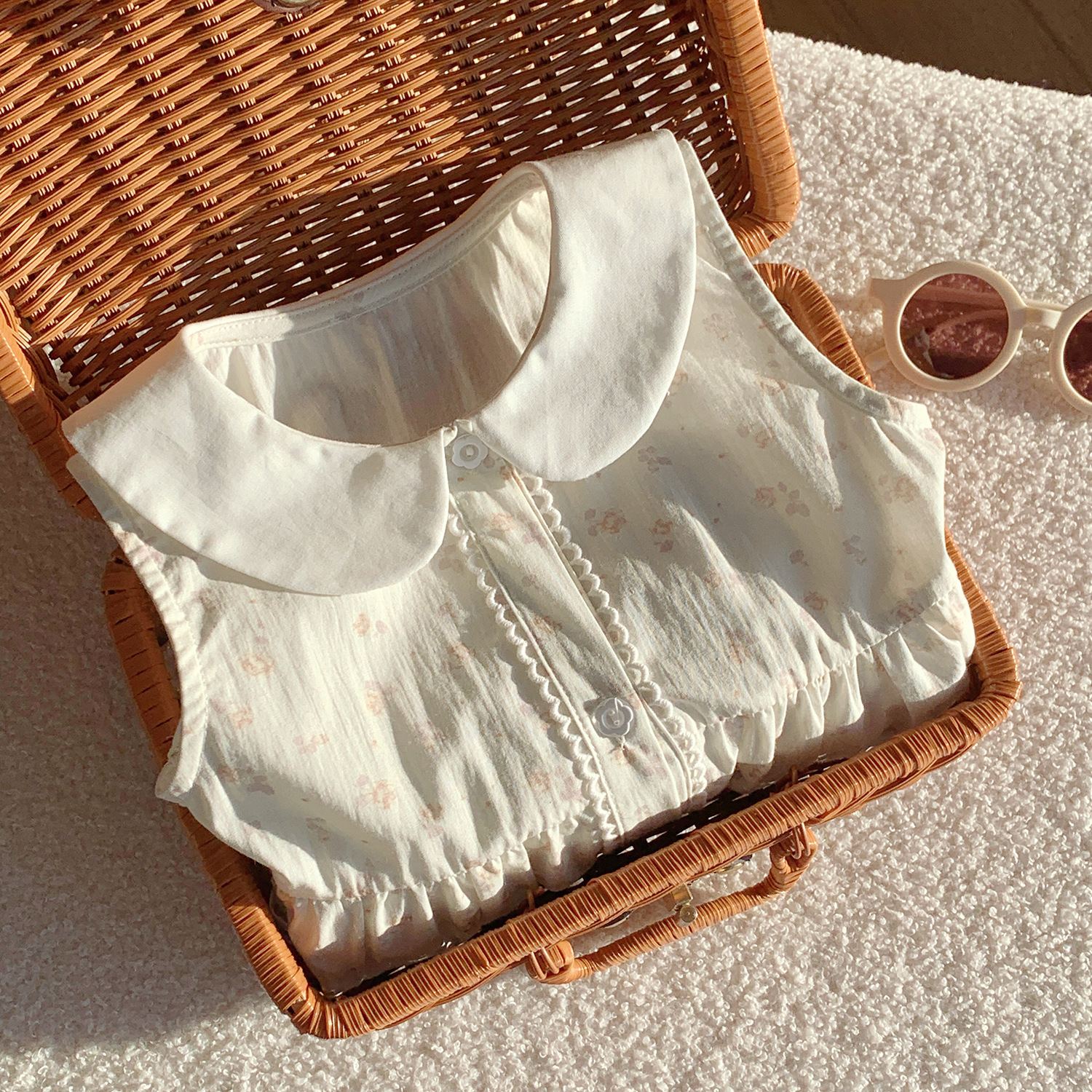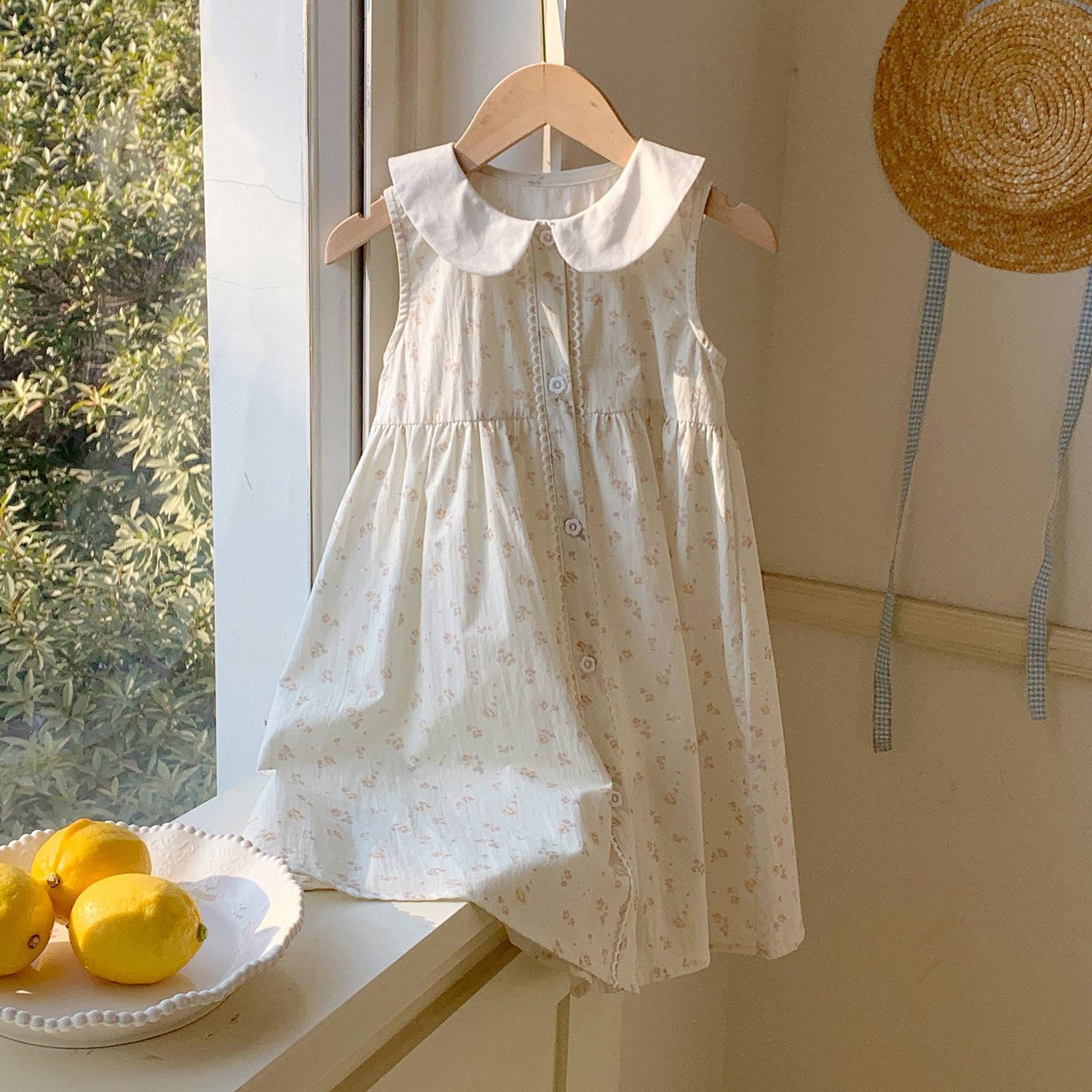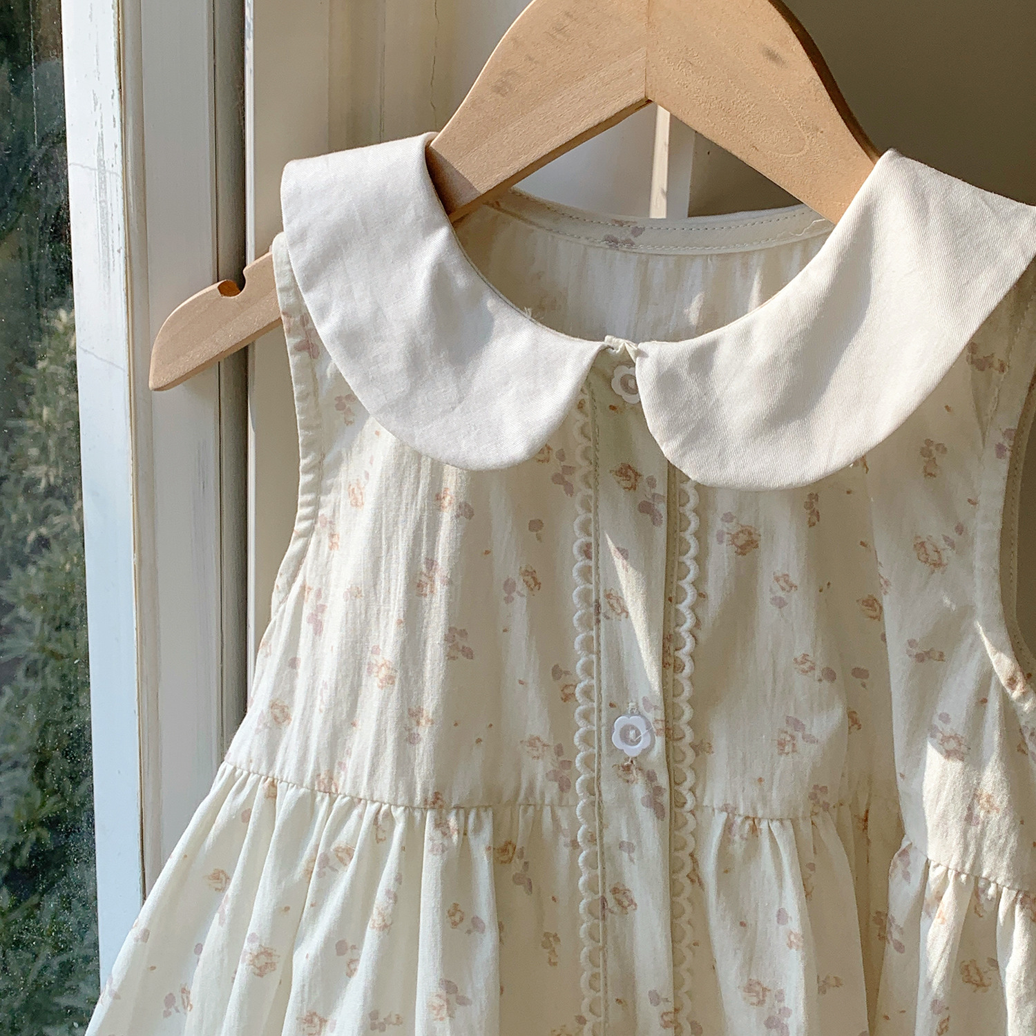 Girls' French Floral Doll Collar Dress