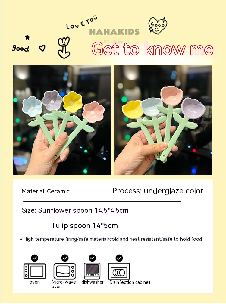 Specifications: Tulip deep scoop-pink, Tulip deep scoop-blue, Tulip deep scoop-yellow, Tulip deep scoop-purple, sunflower spoon-pink, sunflower spoon-blue, sunflower spoon-yellow, sunflower spoon-purple