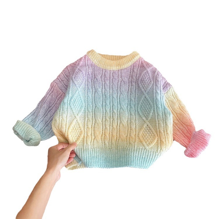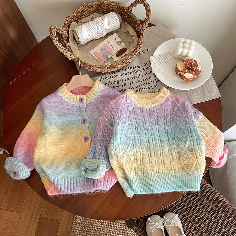 Color: Rainbow cardigan, Rainbow pullover, jeans