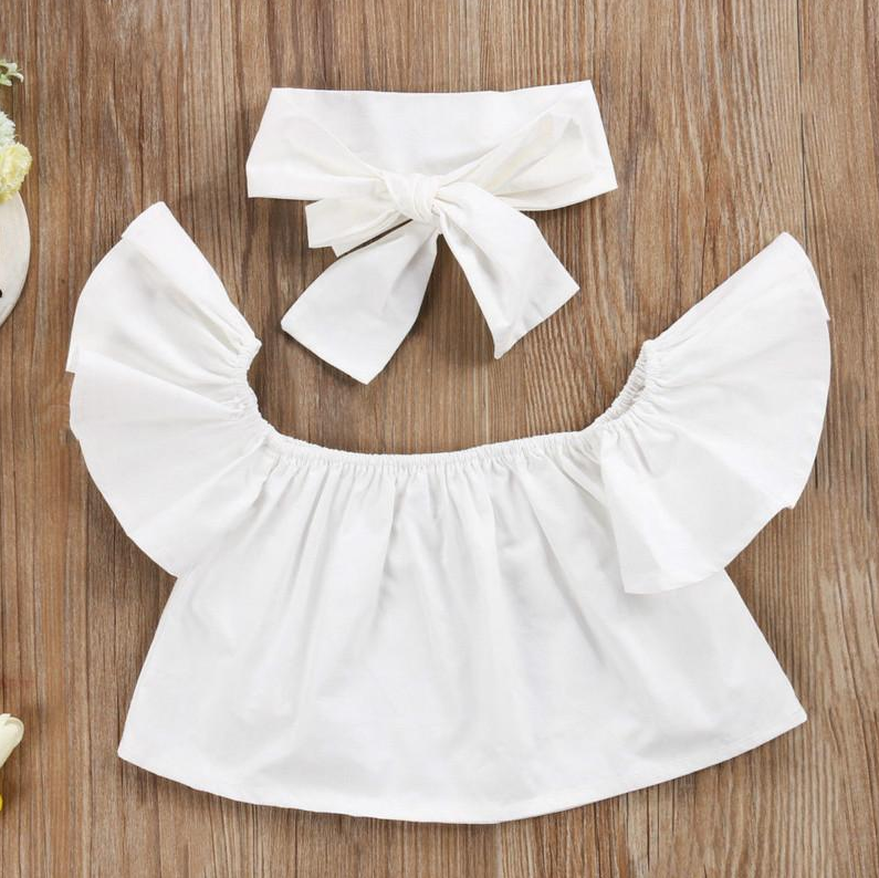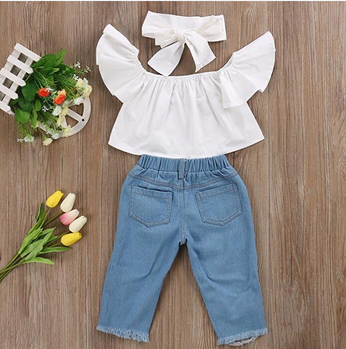 Girl's Hole Jeans White Top 3 Piece Set