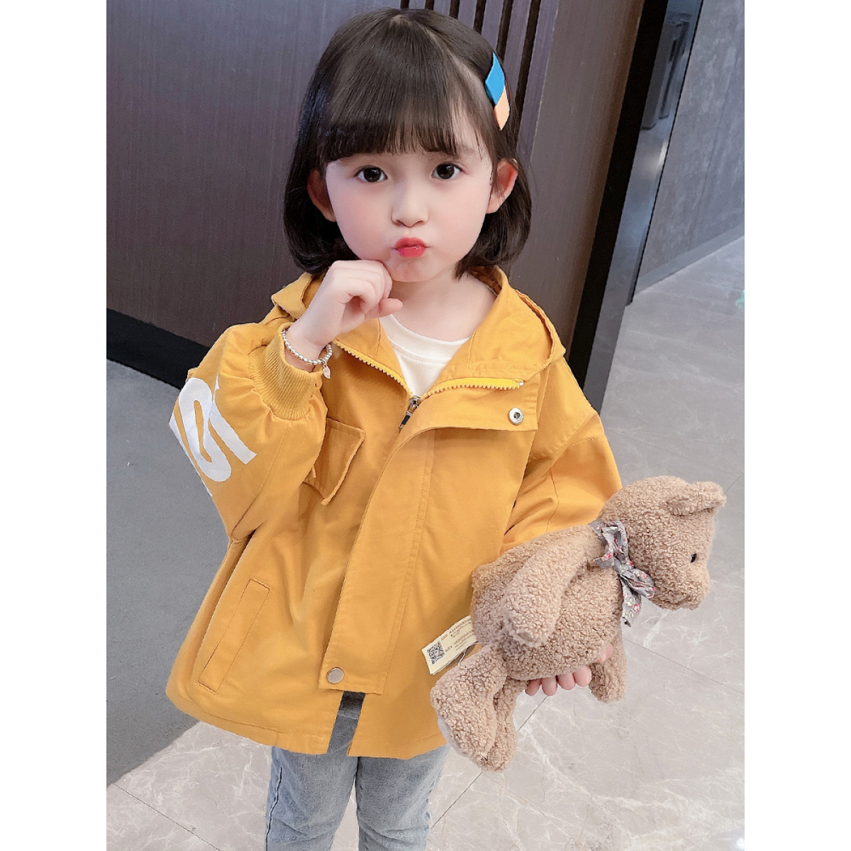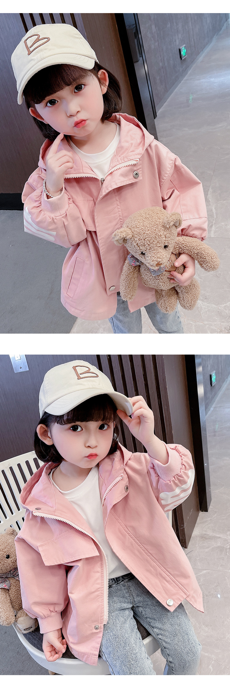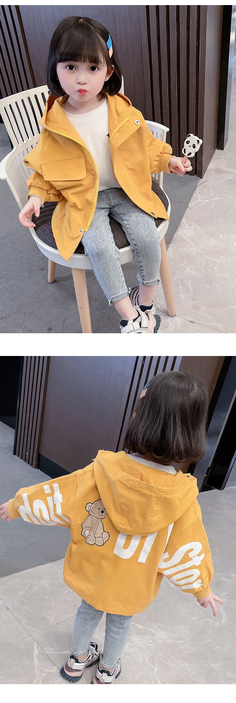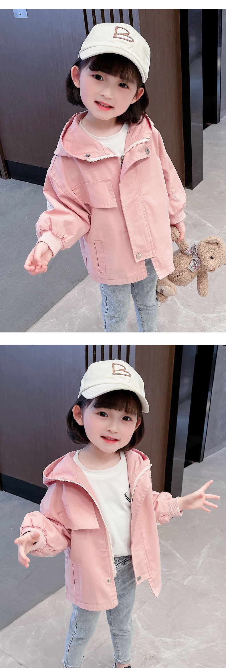 Girls' Hooded Jacket Spring And Autumn Windbreaker