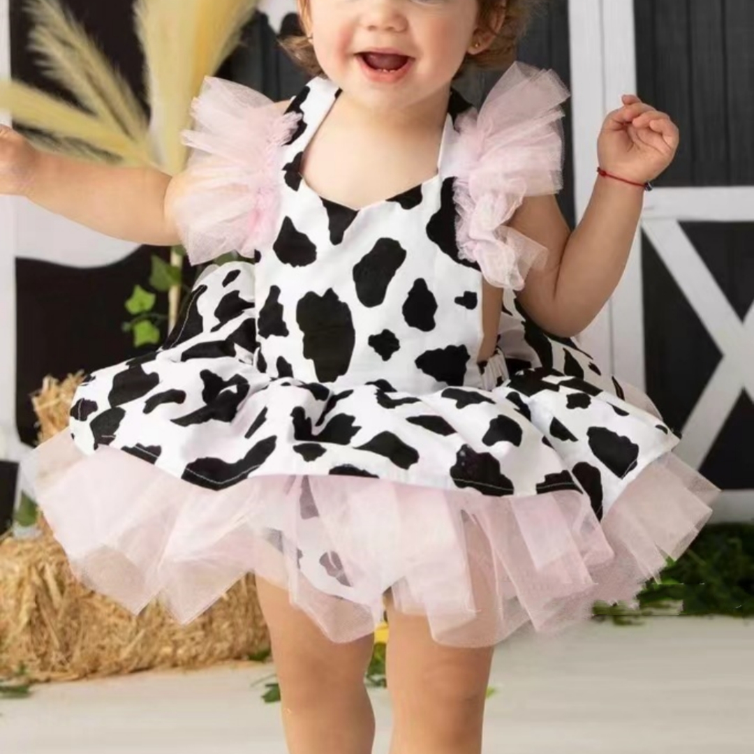 Girls Infant Toddler Cute Cow Printing Tulle Tutu Baby's Gown Headband Set