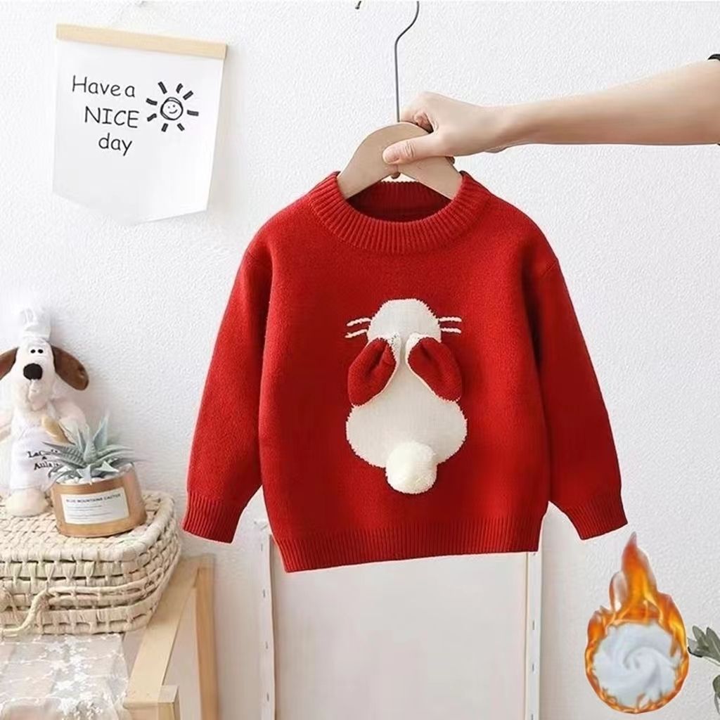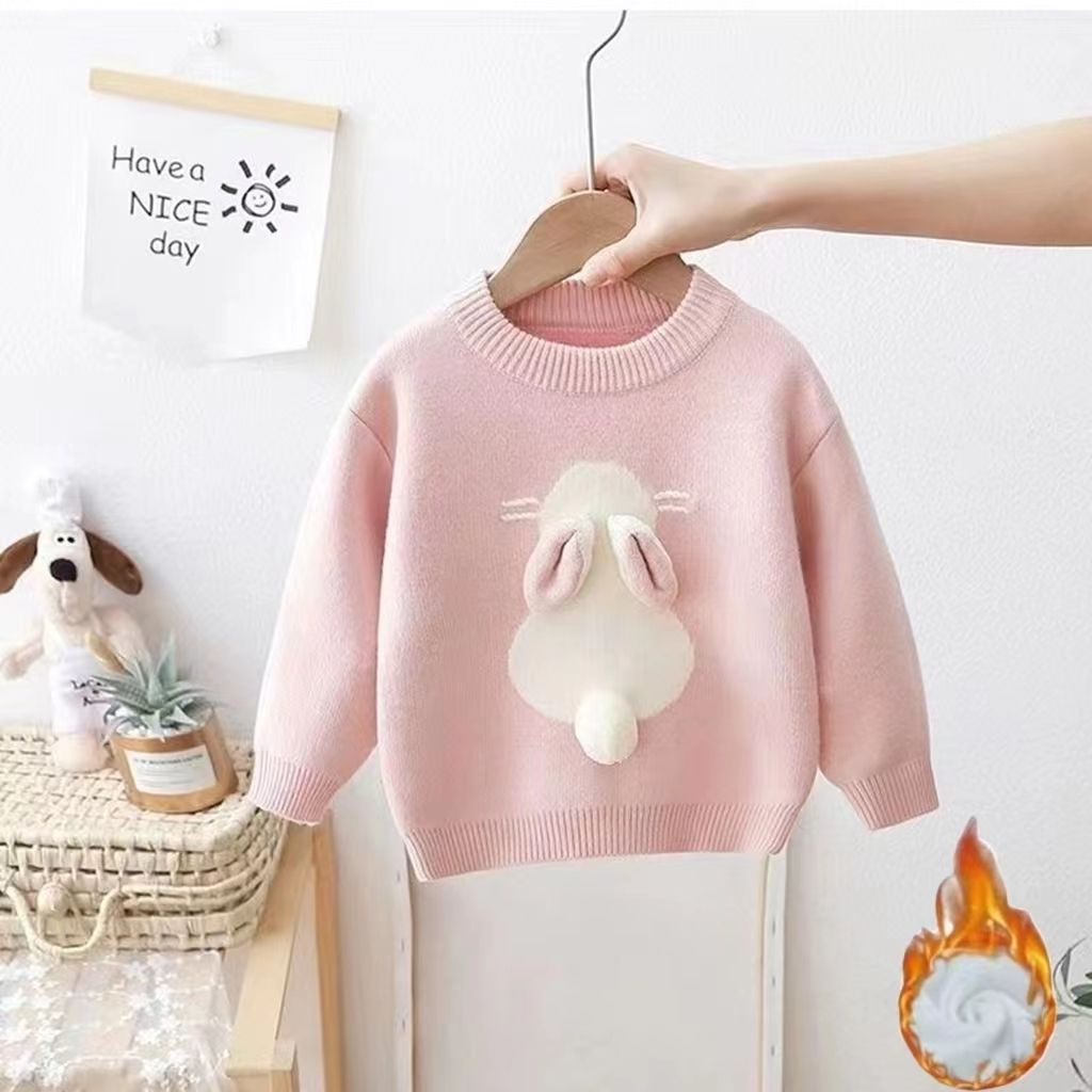 Girls' Knitted Thickened Integral Velvet Sweater
