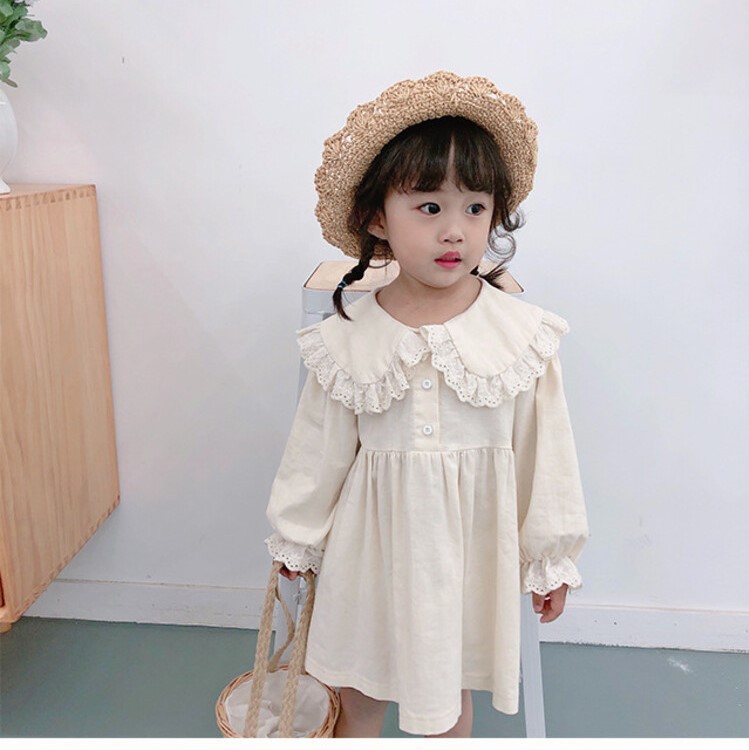 Girls' Lace Collar Solid Color Dress