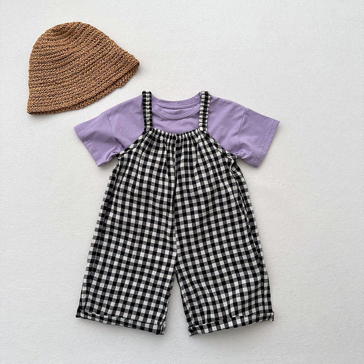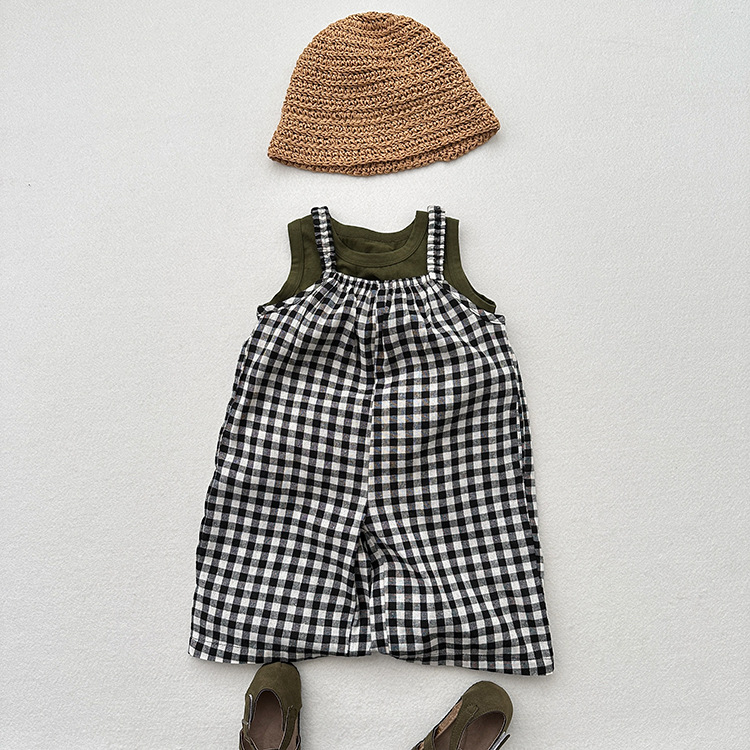 Girls' Lightweight Plaid Cute Cool Jumpsuit