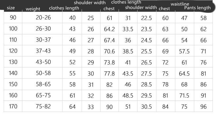 Suitable height: size 7/90cm recommended height 85-95cm, weight 20-26,9 size/100cm recommended height 95-105cm, weight 26-30,11 size/110cm recommended height 105-115cm, weight 30-37,13 size /120cm recommended height 115-125cm, weight 37-43, 15 size/130cm recommended height 125-135cm, weight 43-50, 17 size/140cm recommended height 135-145cm, weight 50-58, 19 size/150cm recommended height 145 -155cm, weight 58-70, size 21/160cm recommended height 155-165cm, weight 70-75, size 23/170cm recommended height 165-170cm, weight 75-85