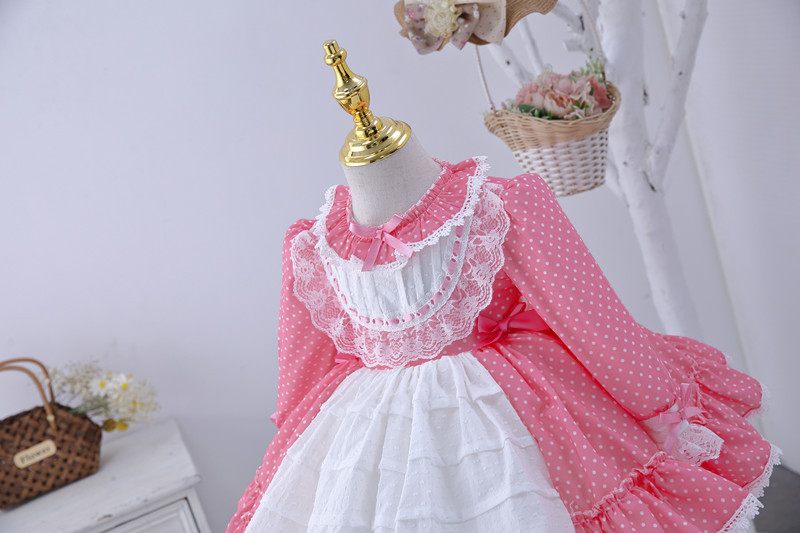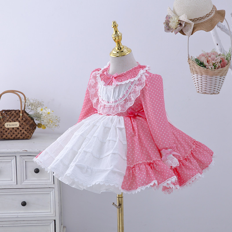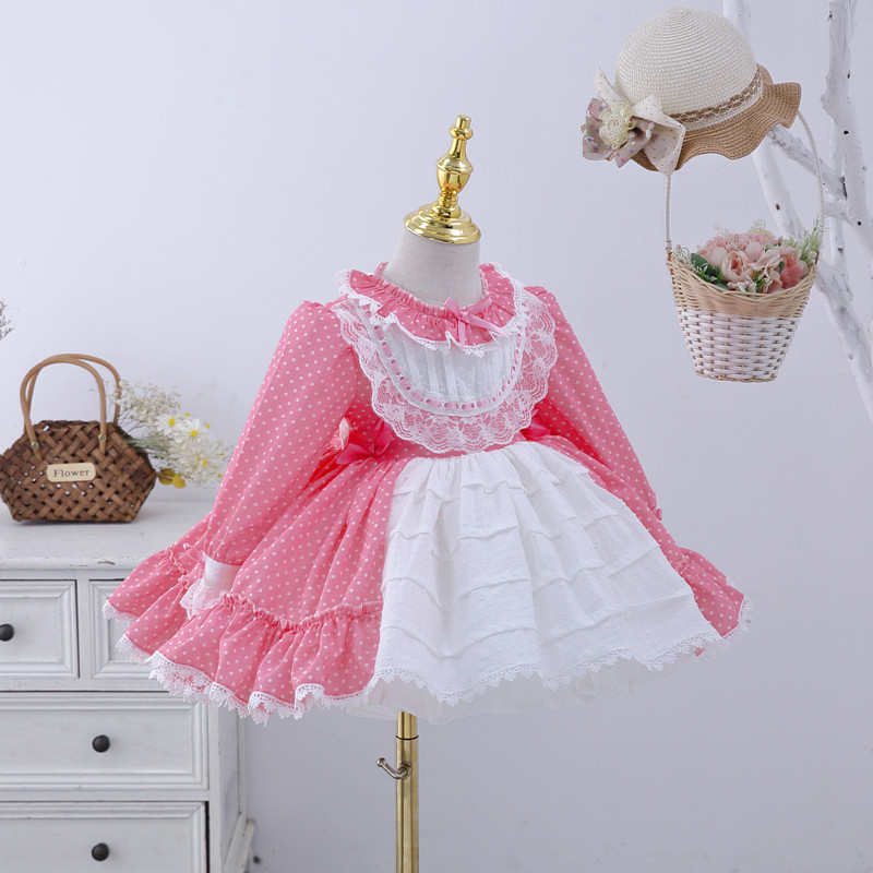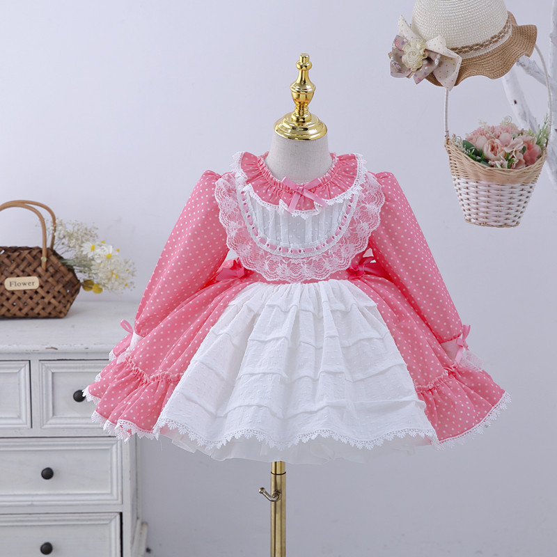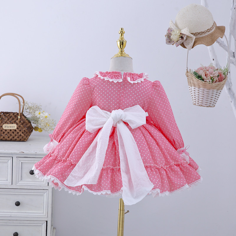 Girls Long Sleeve Dress Lace Flower Bow Princess Dress