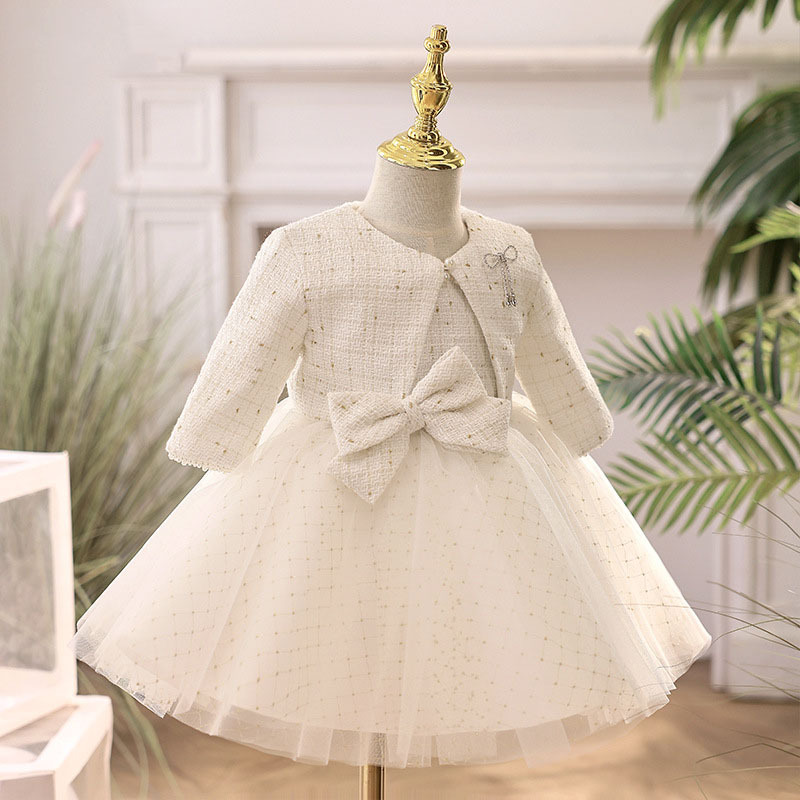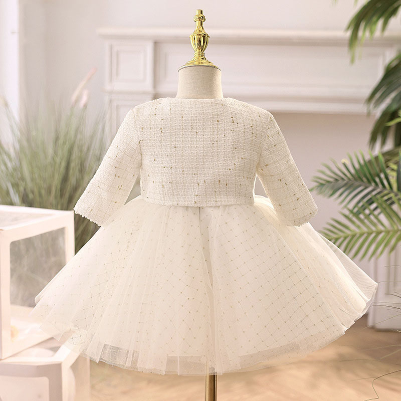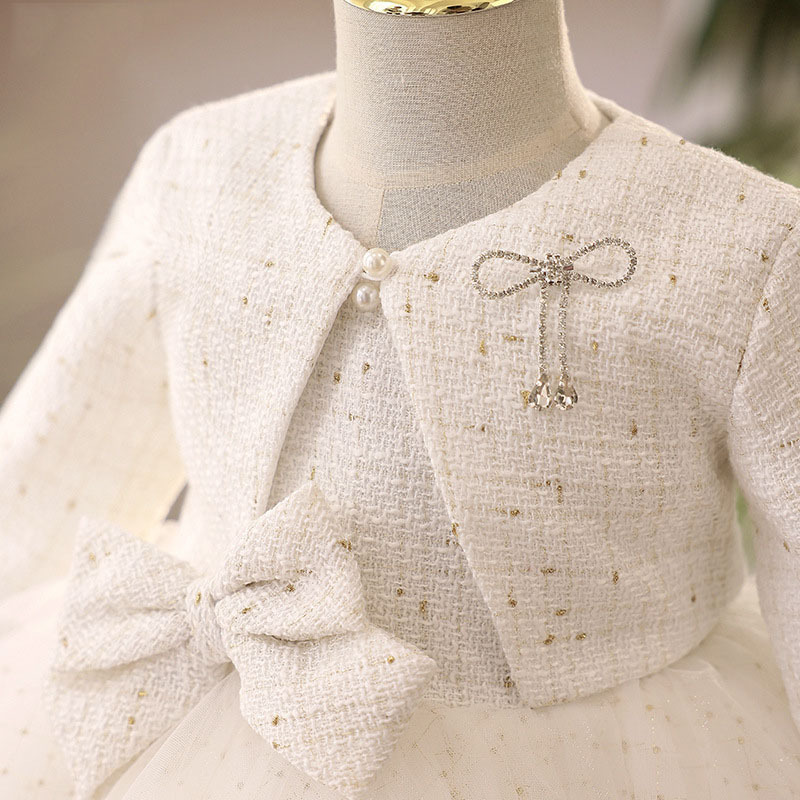 Girl's Long-sleeved Host Flower Girl's Wedding Dress