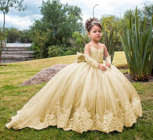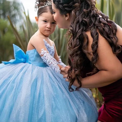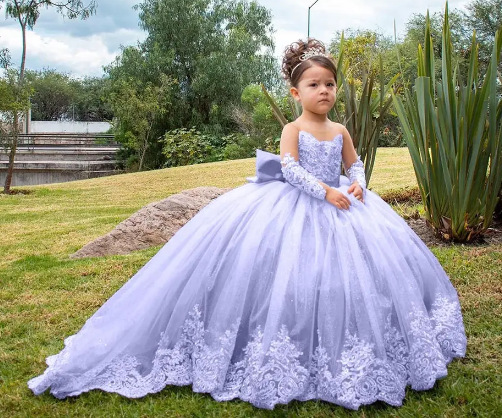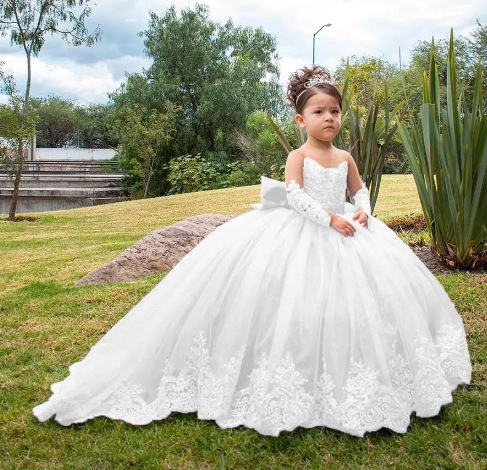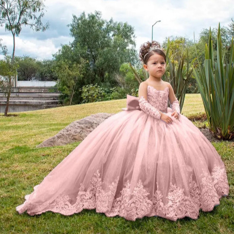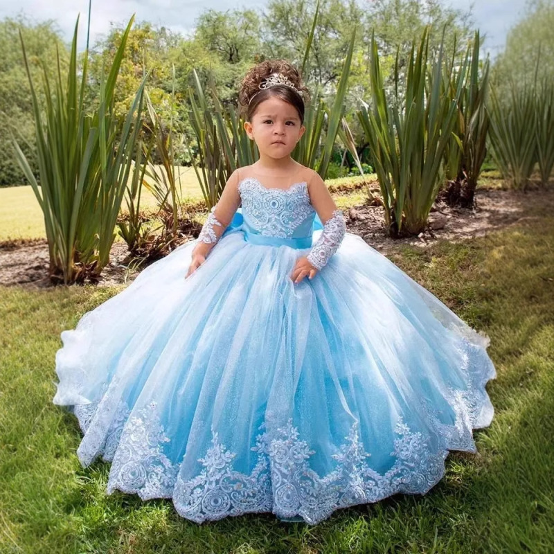 Girls' Long Small Trailing Lace Mesh Bubble Skirt