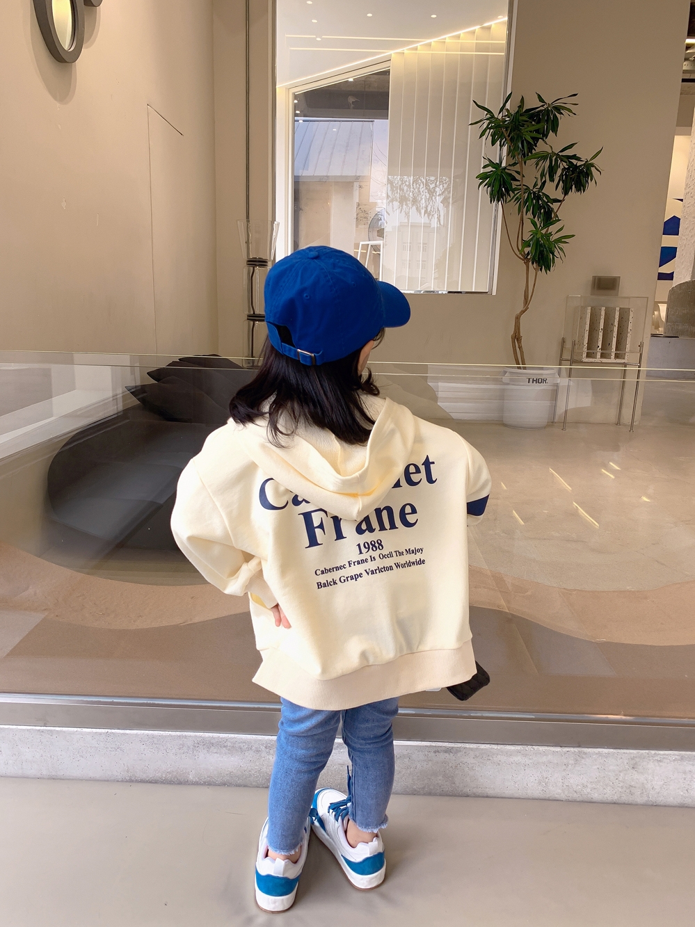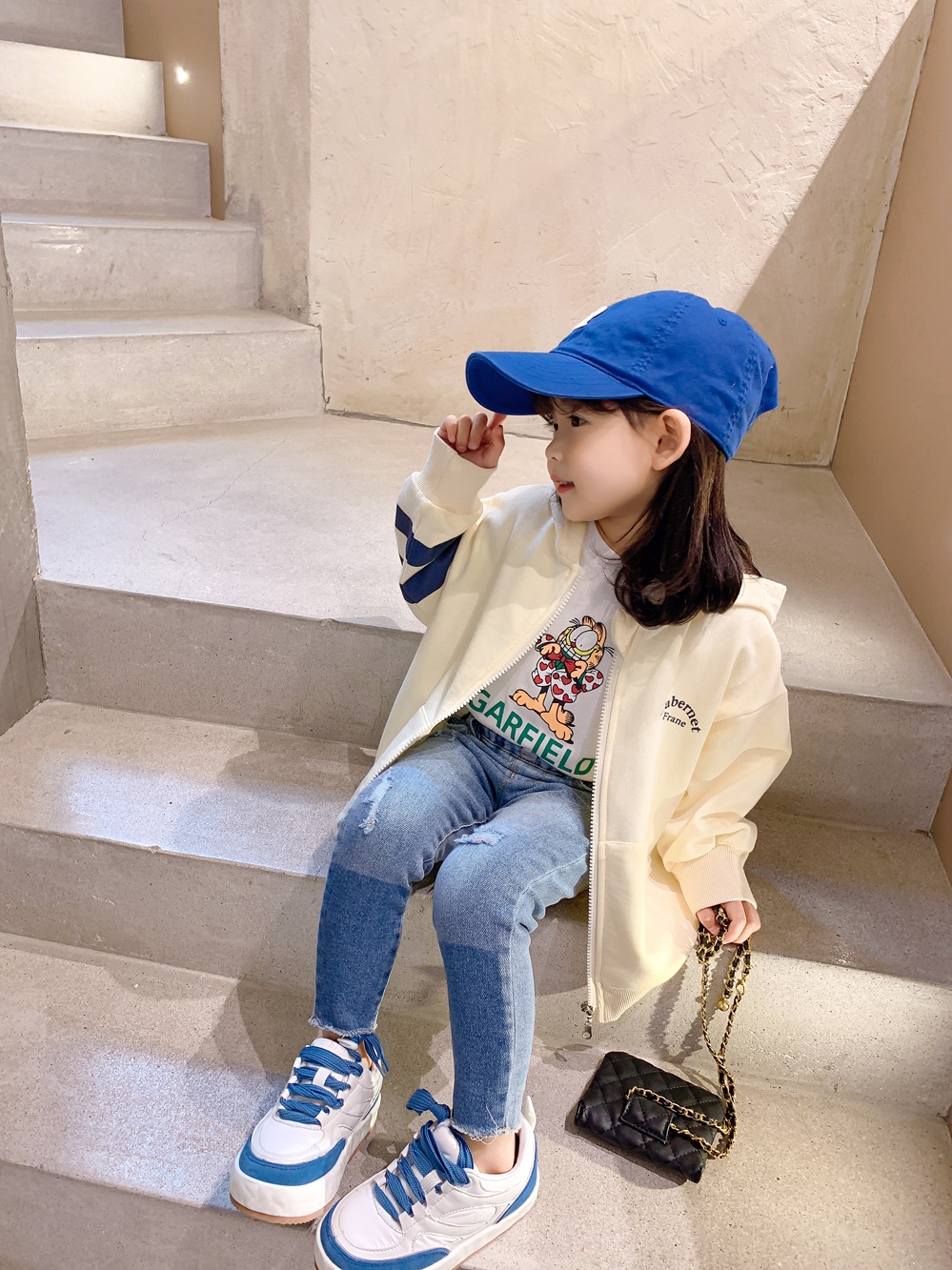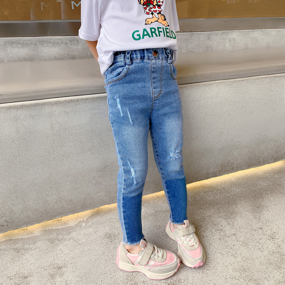 Color classification: Beige white short-sleeved T blue jeans