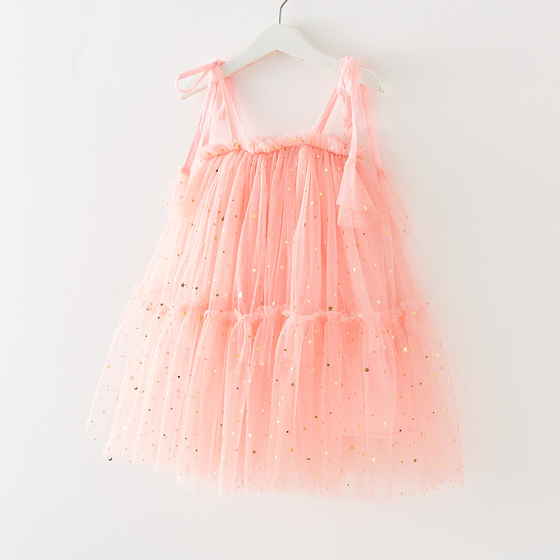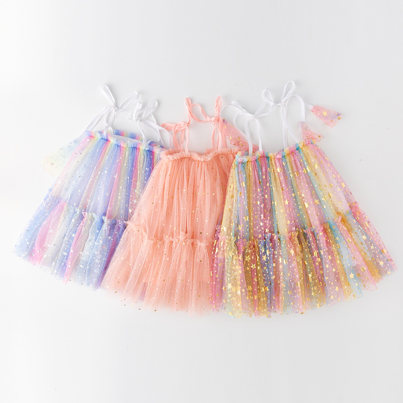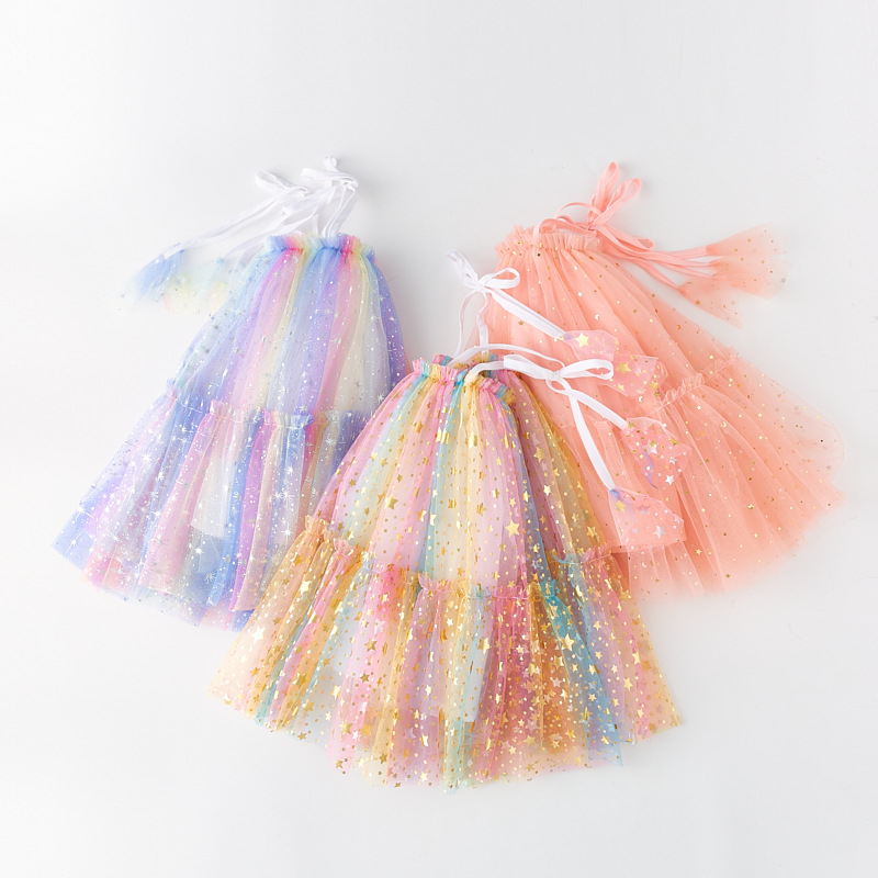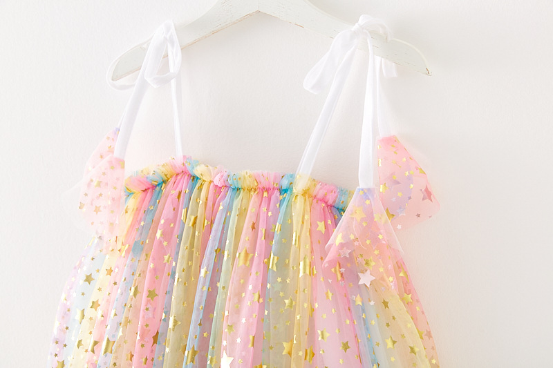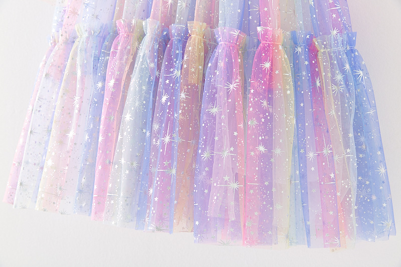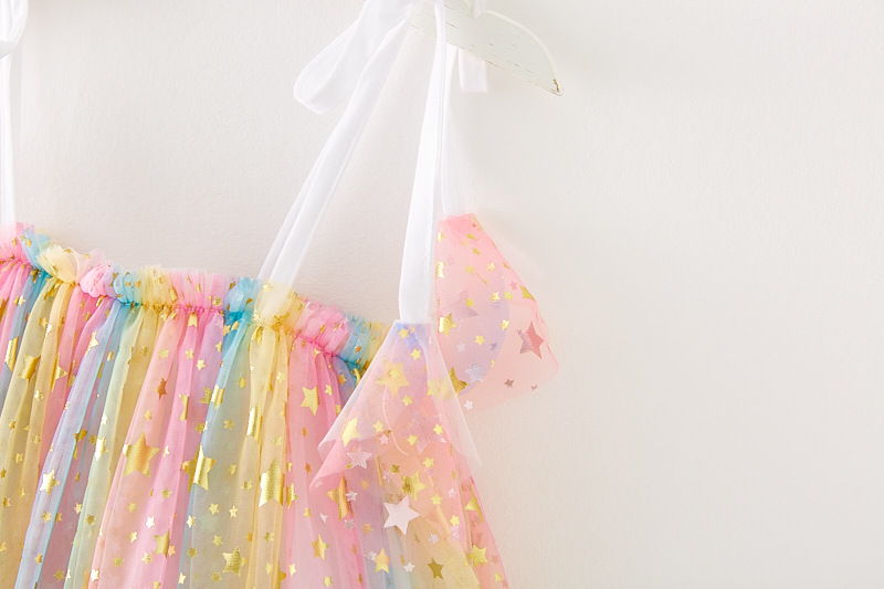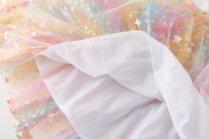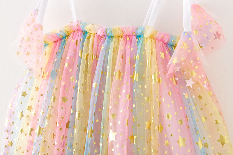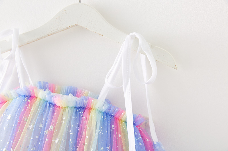 Girls' Mesh Cake Rainbow Glitter Star Jumpsuit