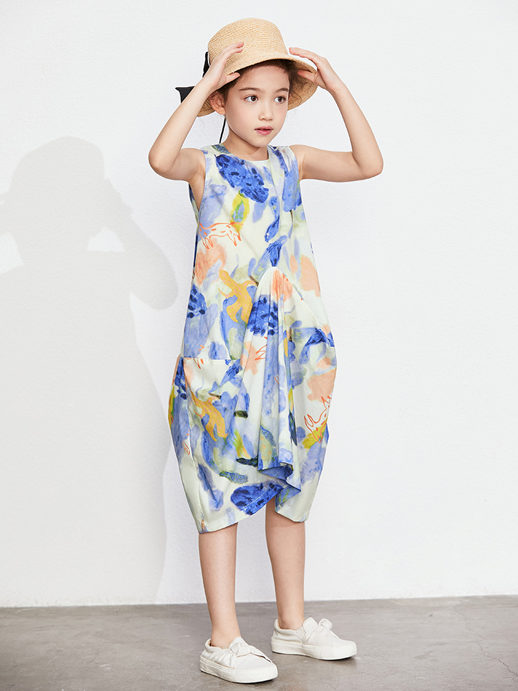 Girls' One-piece Graffiti Suspender Dress