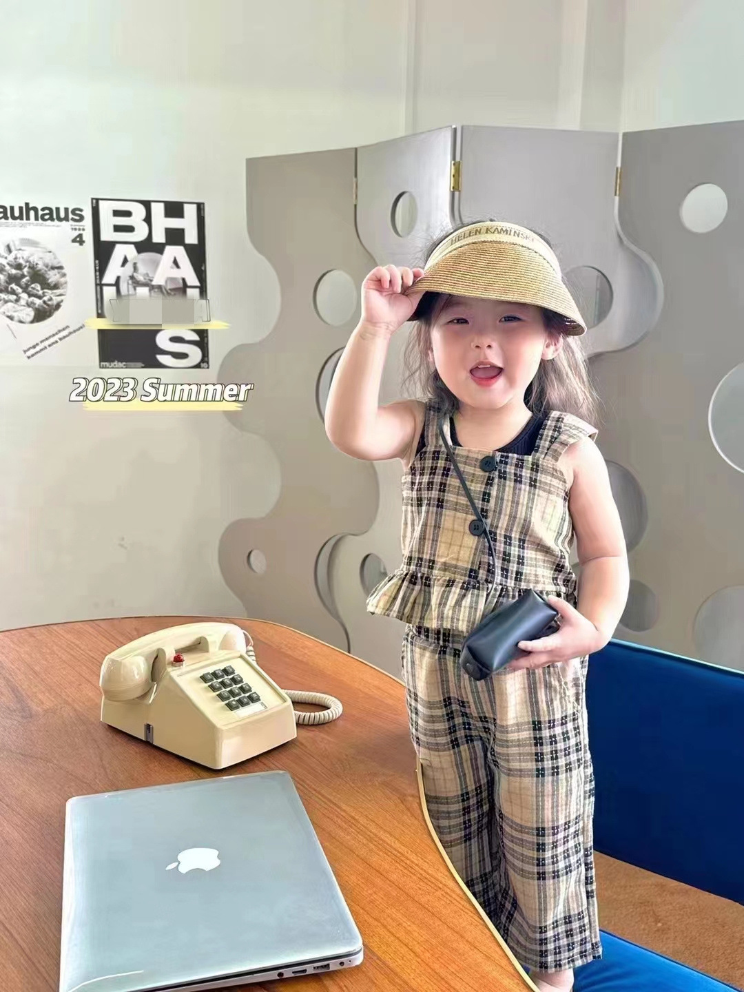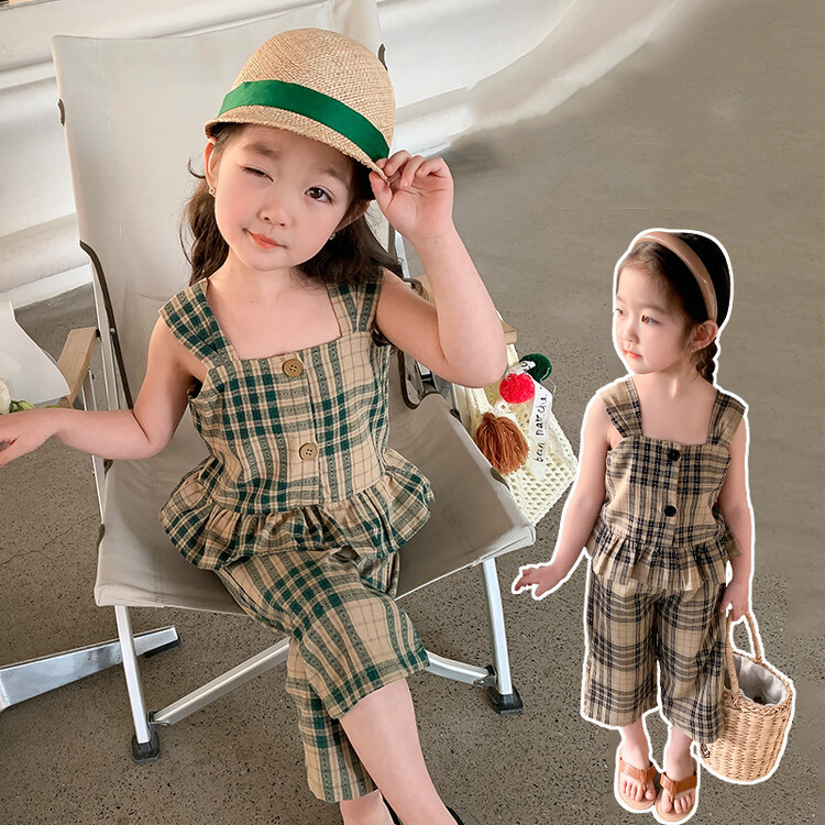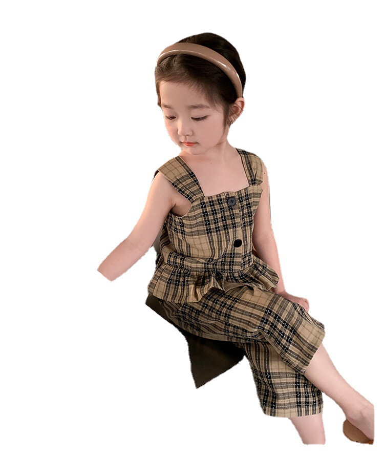 Girls' Plaid Vest Cropped Pants Set