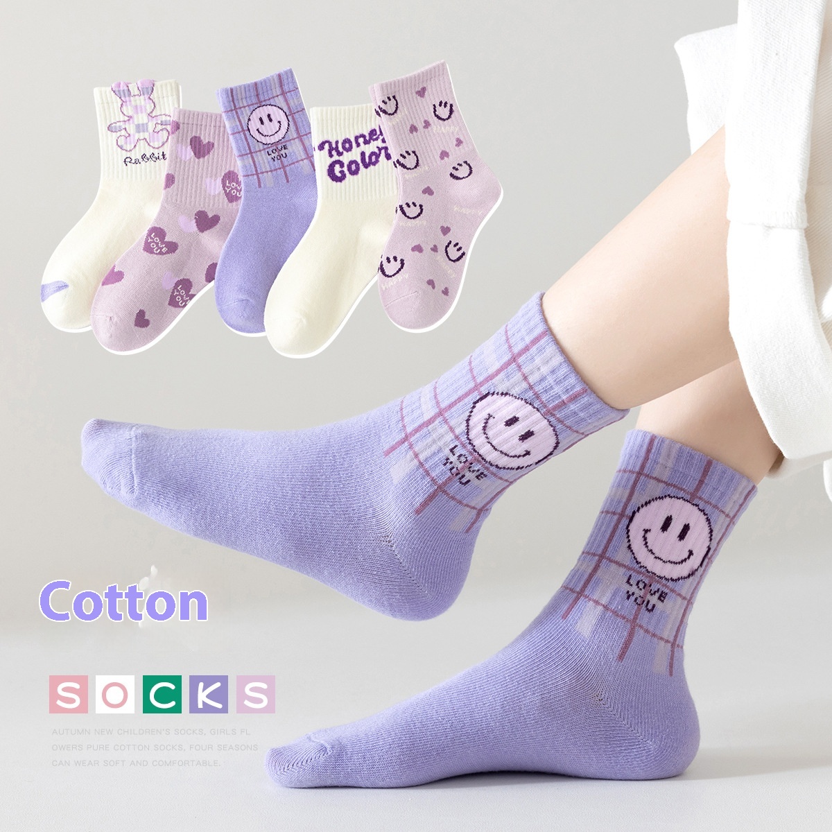 Color: 8050 peach heart girl sports, 8058 pink purple little devil, 8066 colorful cartoon Sports, 8018 South Korea black and white puppy, 8061 contrast color horizontal stripes smiling face, 8052 light purple three-dimensional sports, 8054 strawberry love rabbit, 8079 Maillard stripes, 8038 cartoon flowers