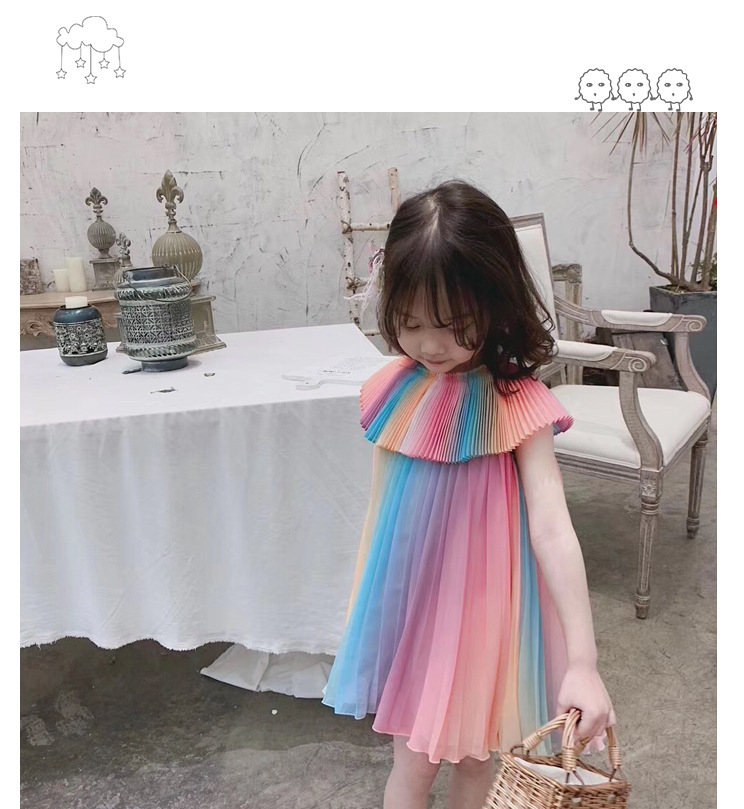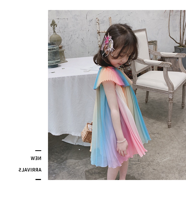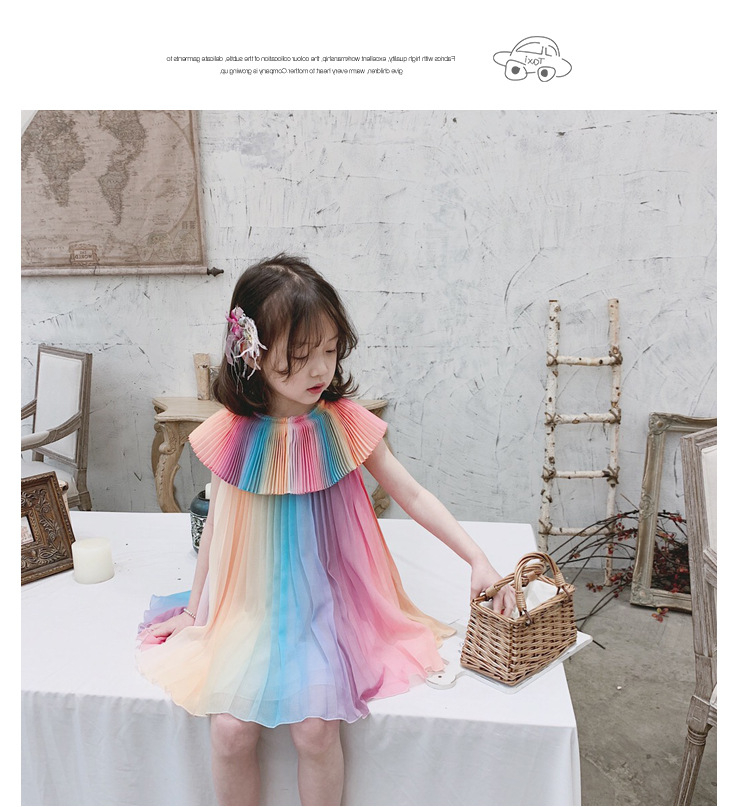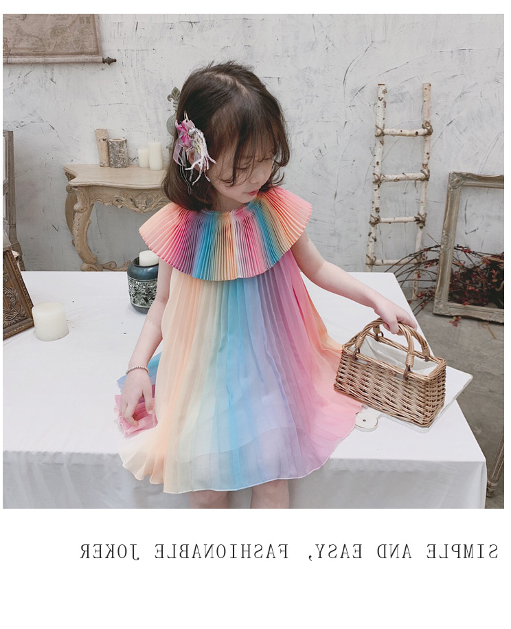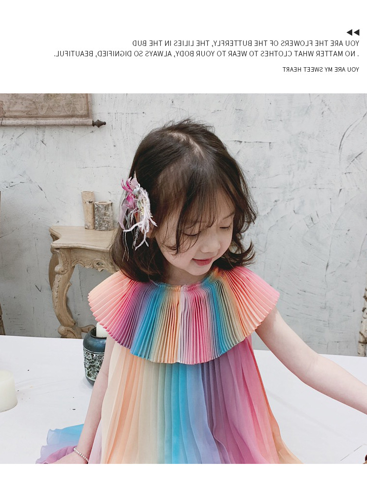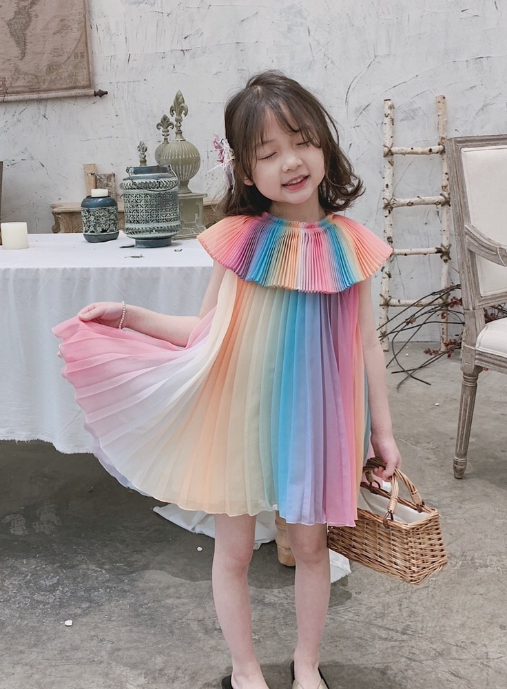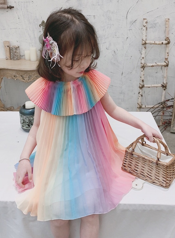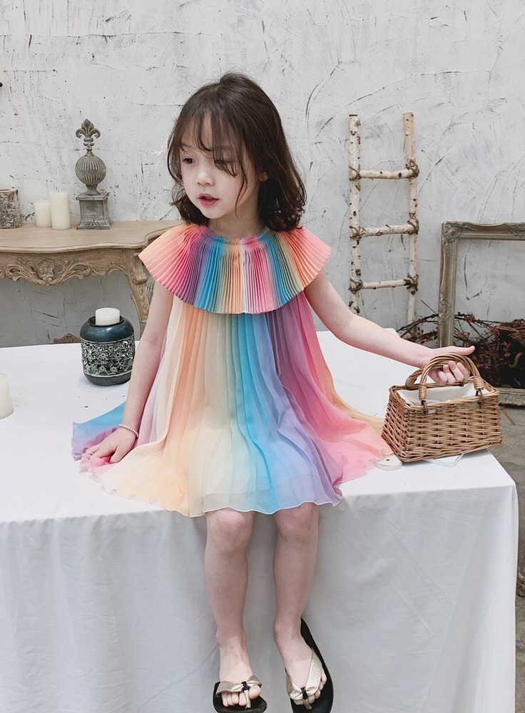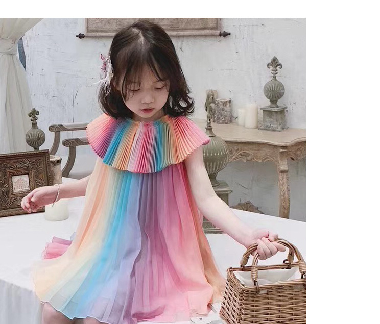 Girl's Rainbow Pleated Princess Dress