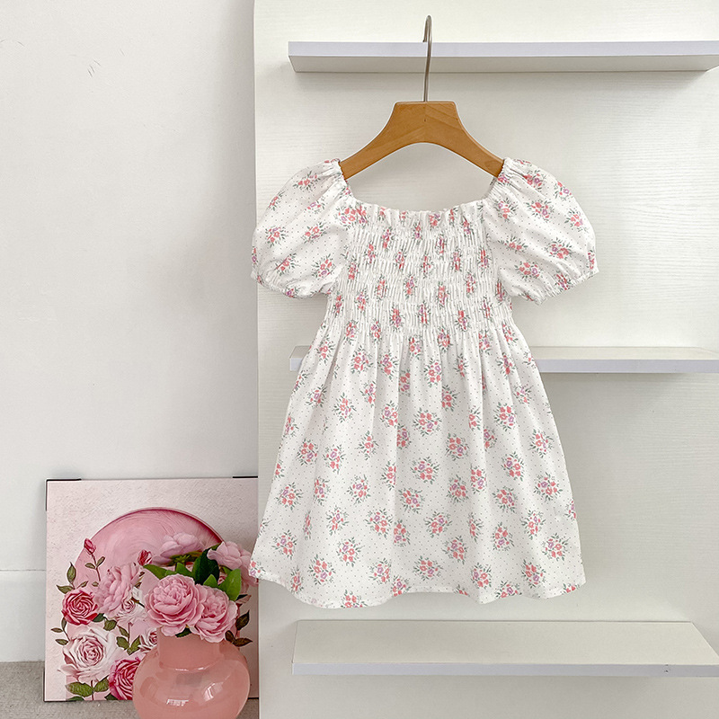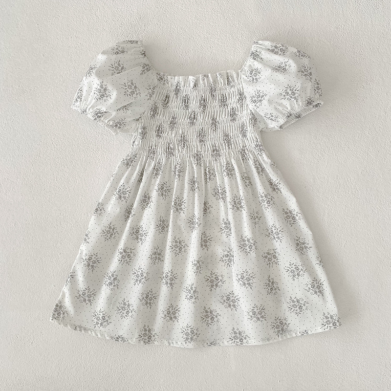 Color: ,B081-pink flower dress, B081-gray flower dress