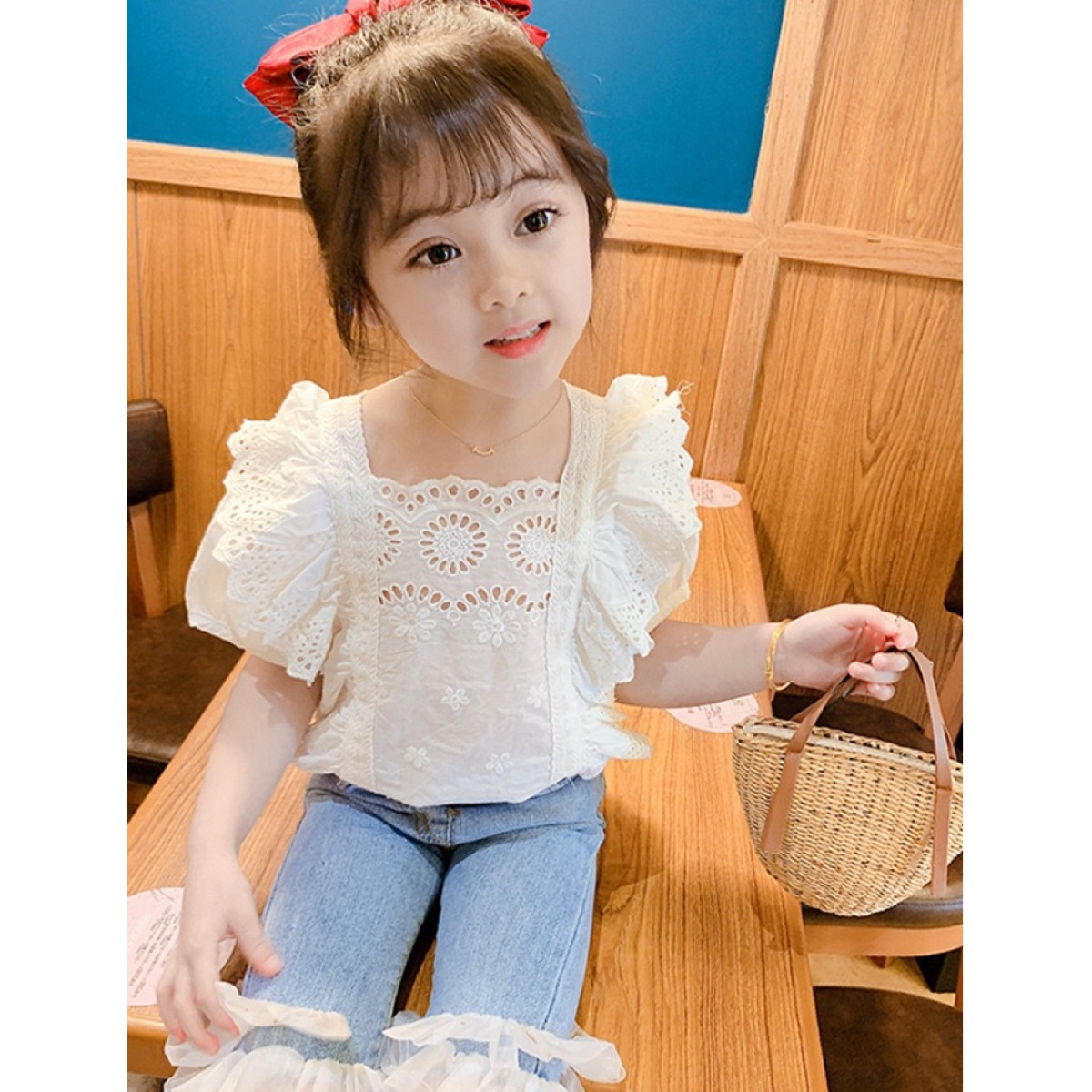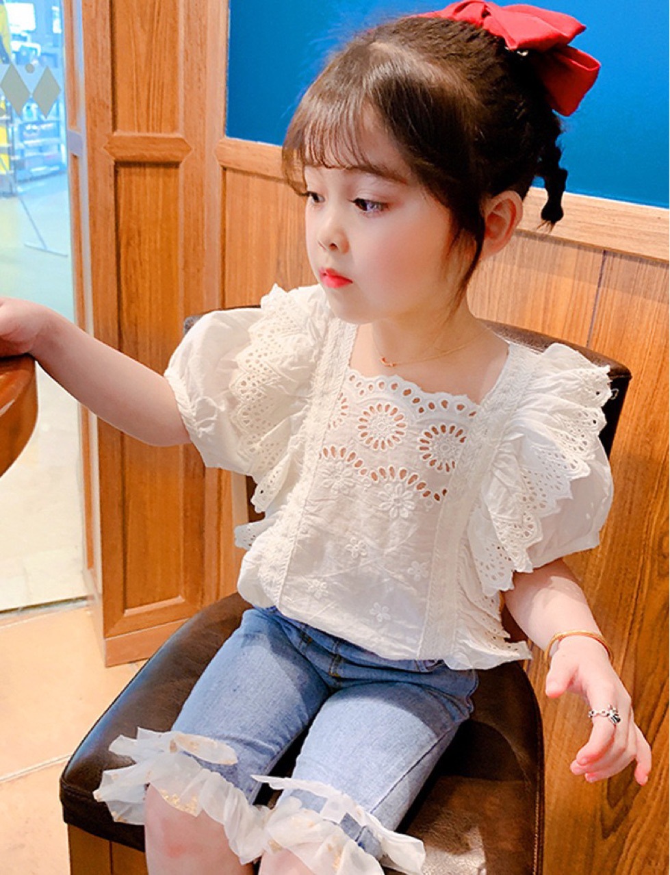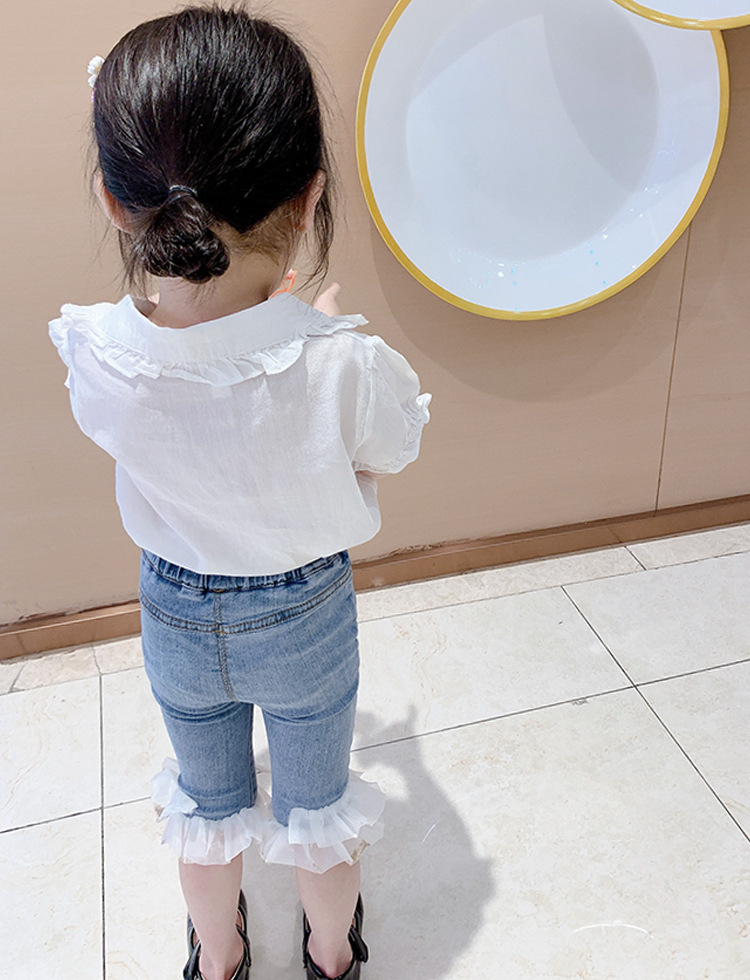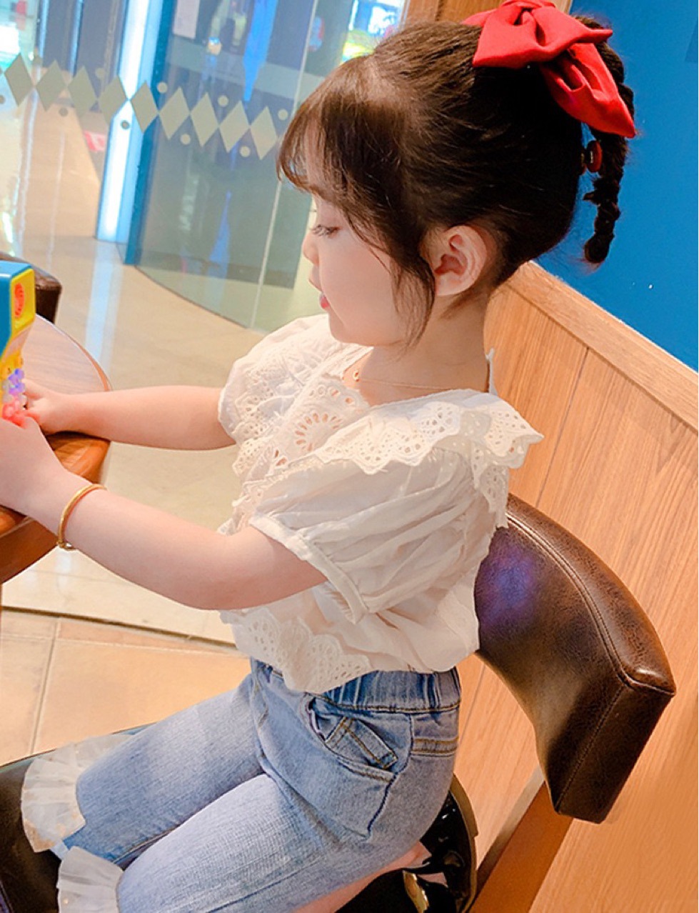 Girls Short-sleeved Lace Shirt Lace Flared Jeans Princess Fashion Suit