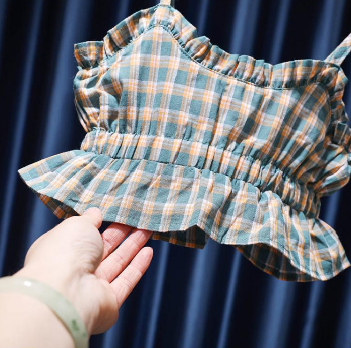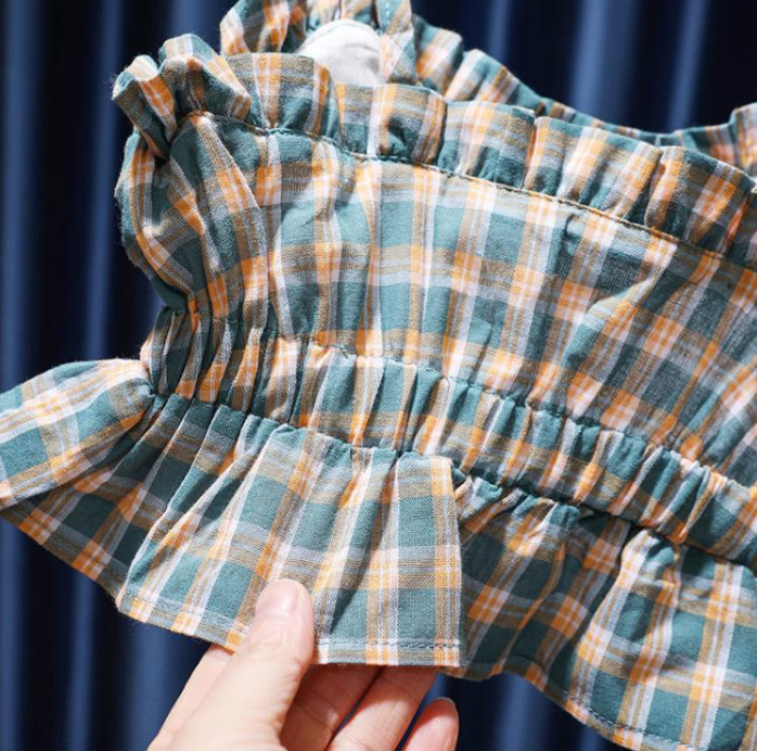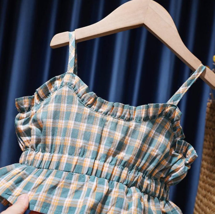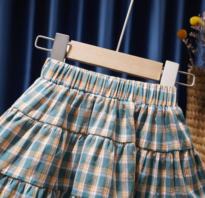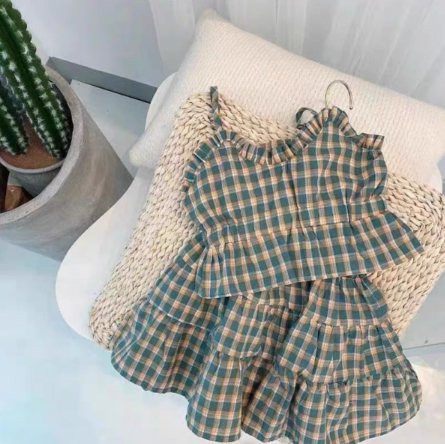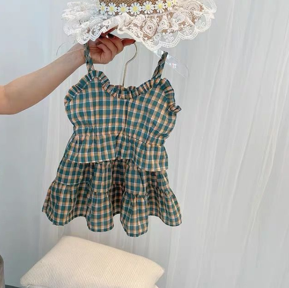 Girls' Short Summer Plaid Suspender Top Mid Skirt Suit For Women