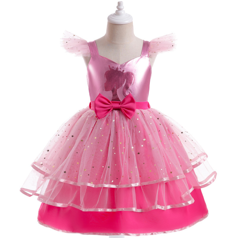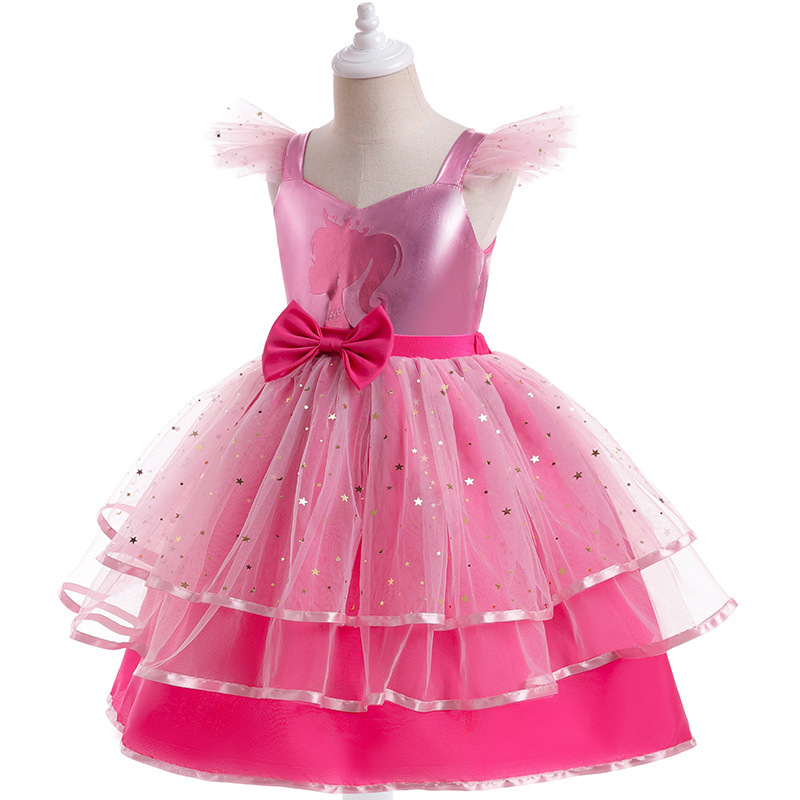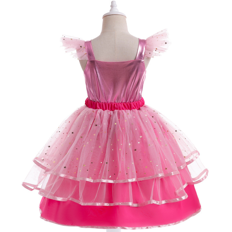Girl's Simple Cartoon Printed Mesh Dress
