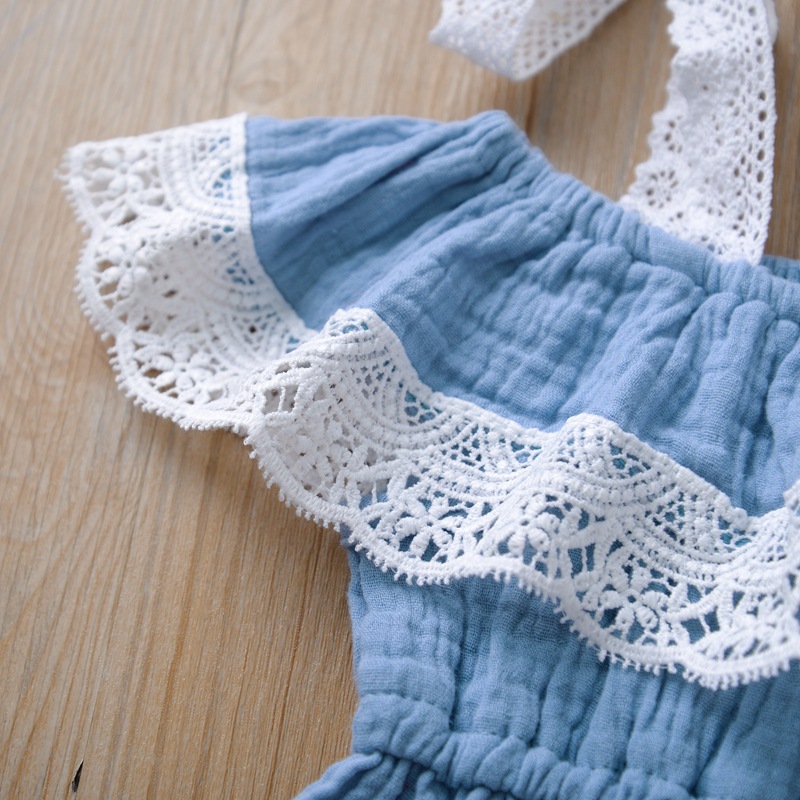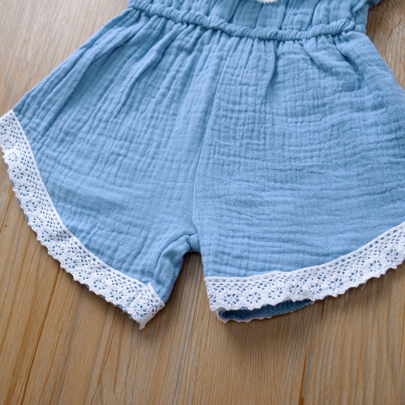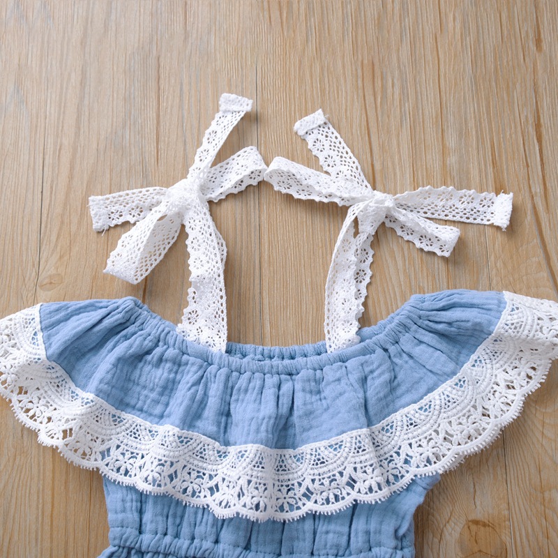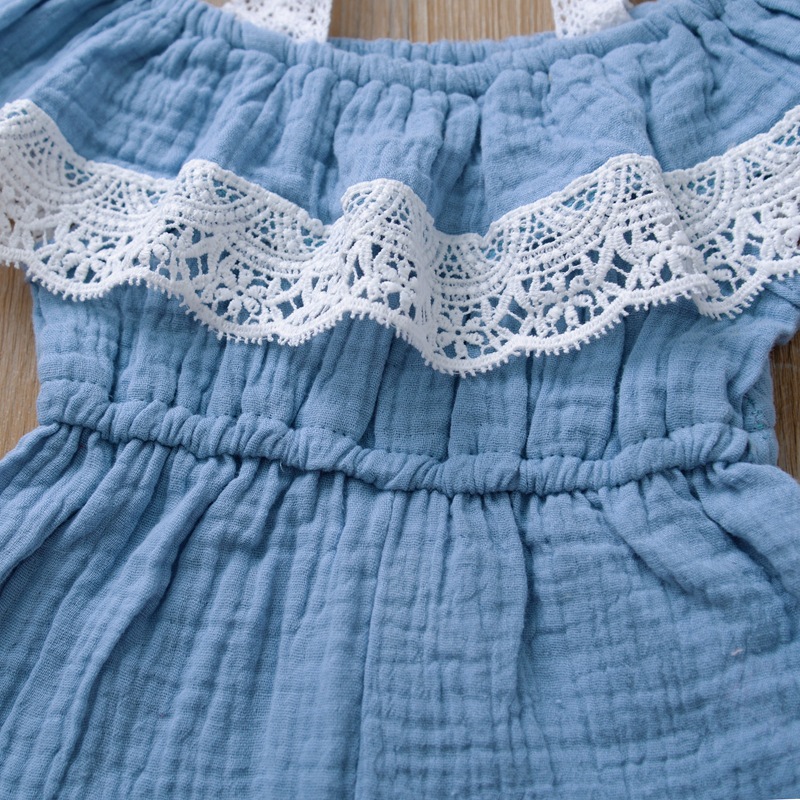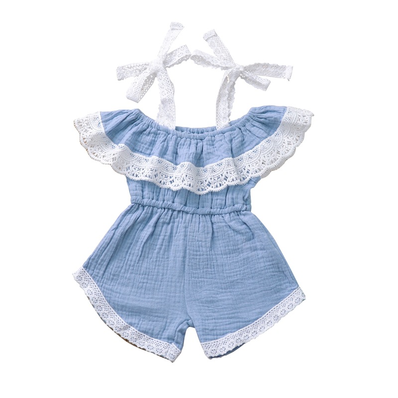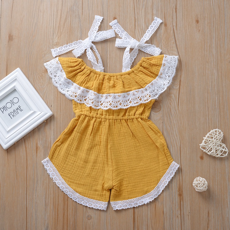 Girls' Sling Jumpsuit Ins Solid Color Lace One-shoulder Jumpsuit