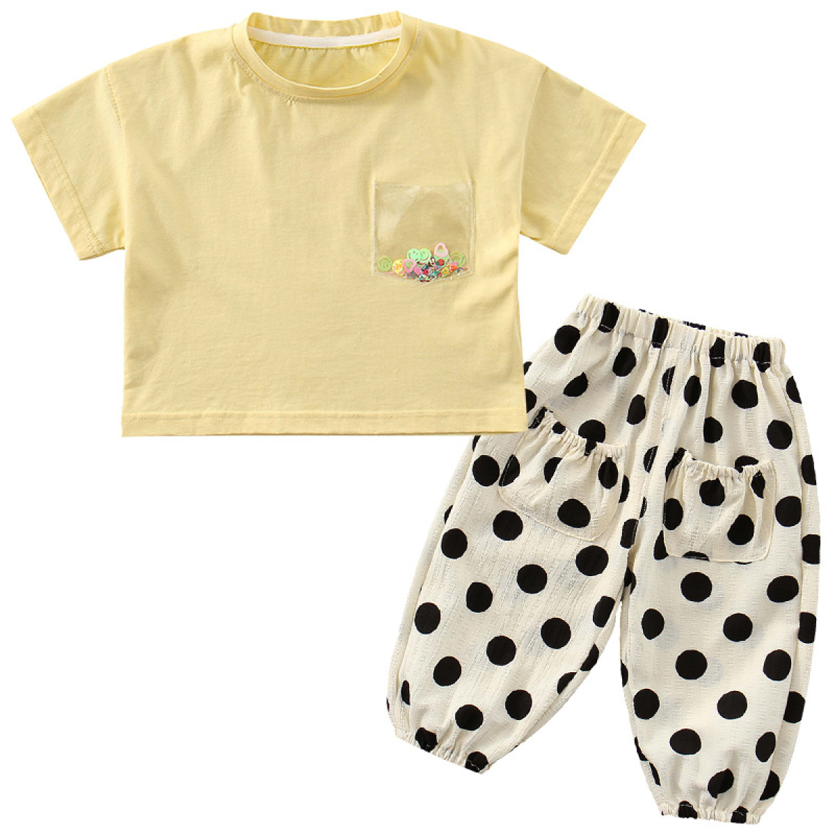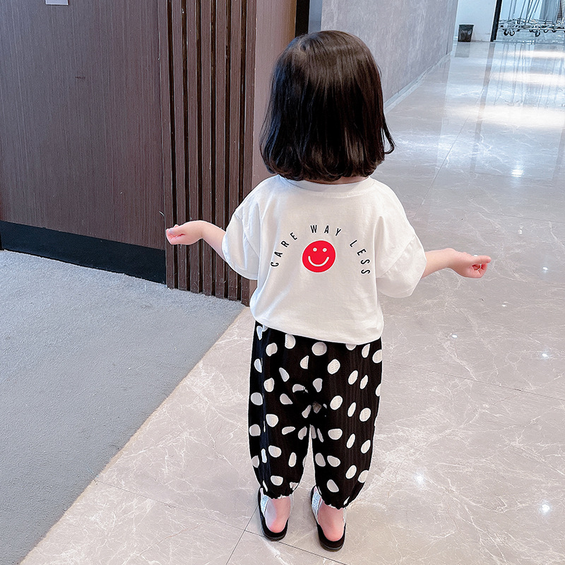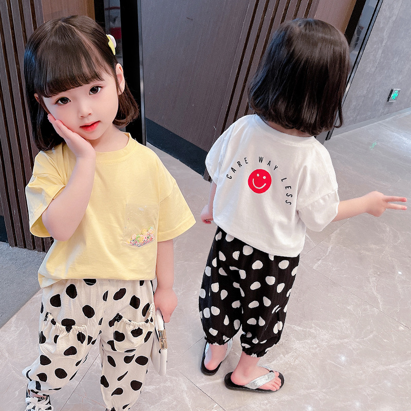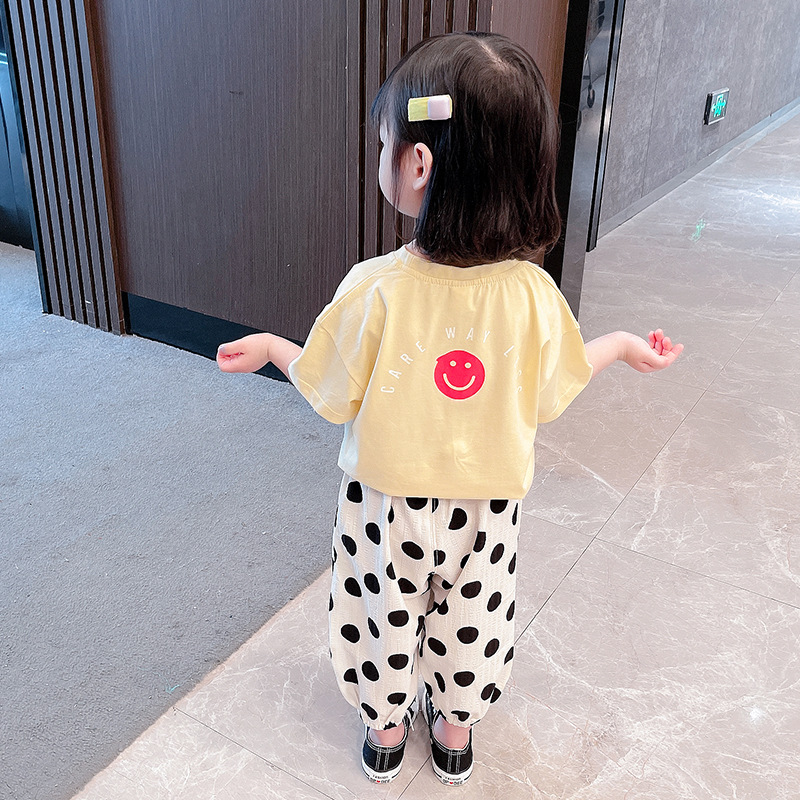Girls Smiley Face Suit, Baby Western Style Two-piece Suit