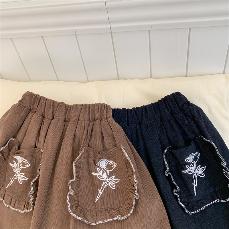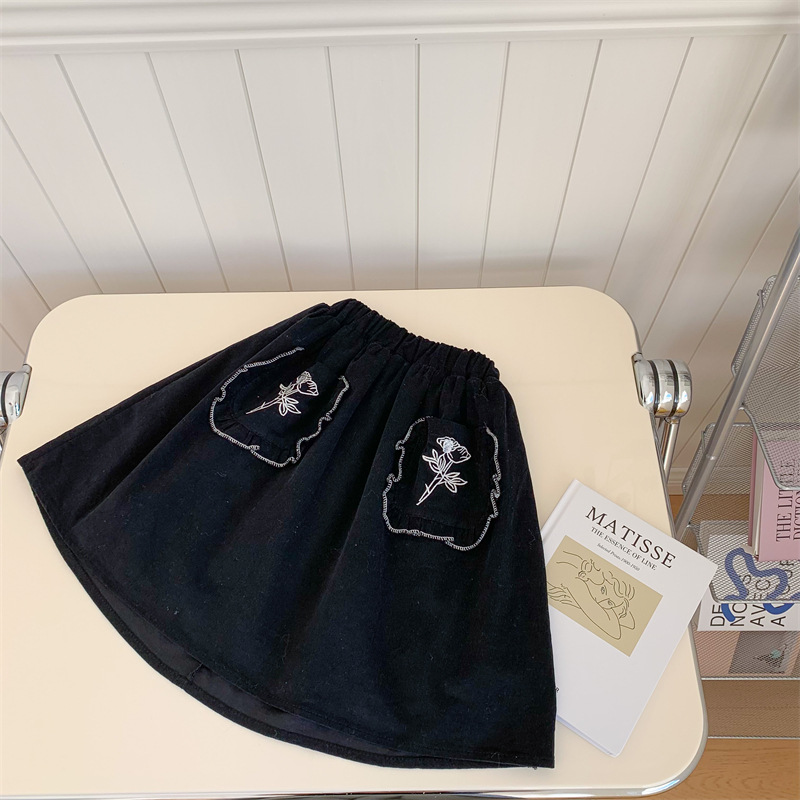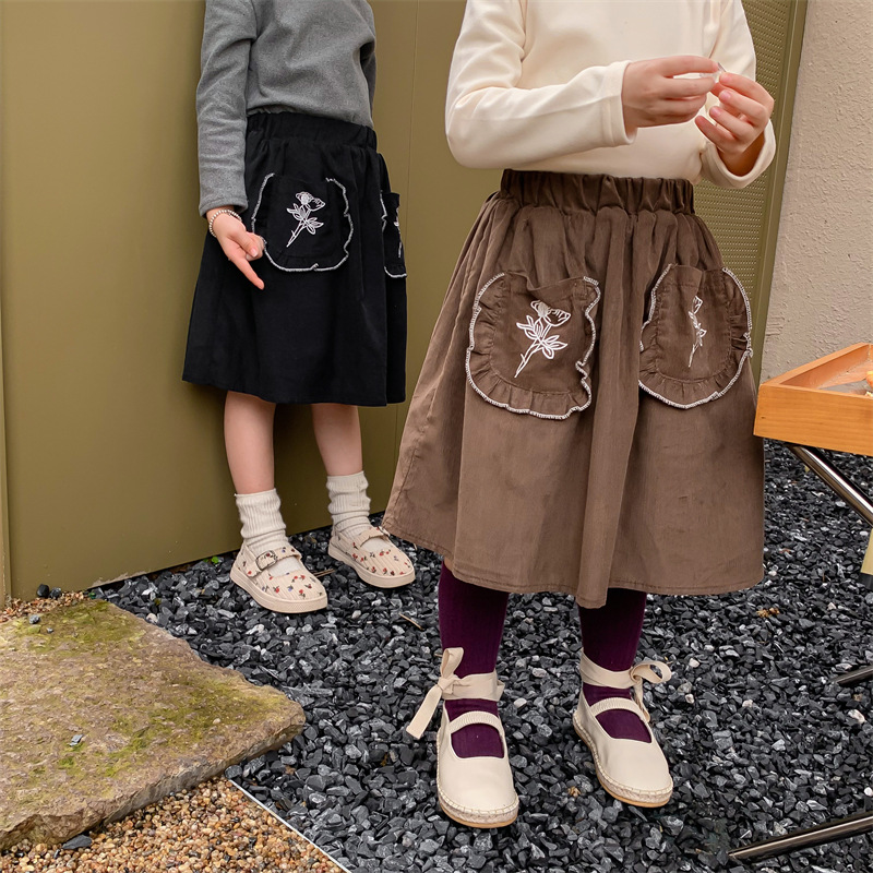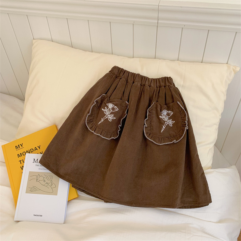 Girls' Solid Color Plus Velvet Corduroy Skirt