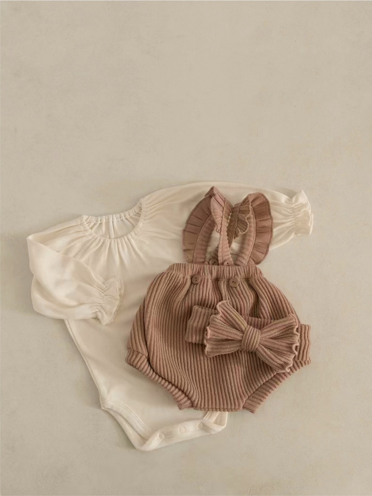 Color: apricot suspenders, dark pink suspenders, dark coffee suspenders, light brown suspenders, apricot hair band, dark pink hair band, dark coffee hair band, Light Brown Brown Brown hair band, apricot hat, dark pink hat, dark coffee hat, light brown hat
