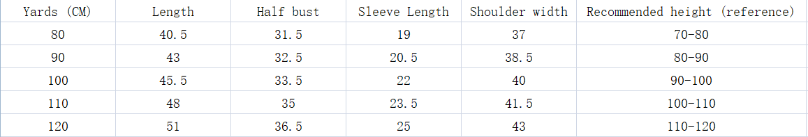 Suitable height: 80cm,90cm,100cm,110cm,120cm
