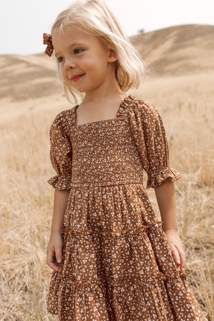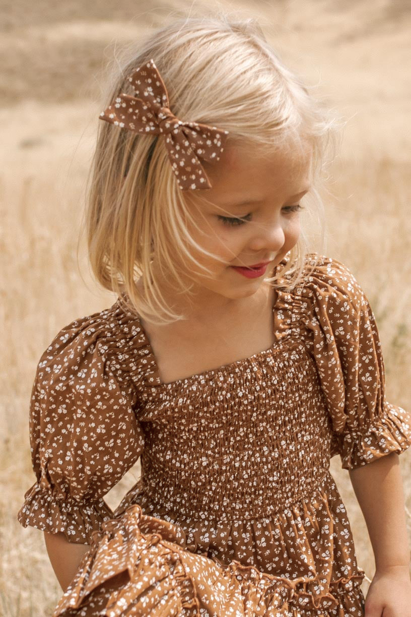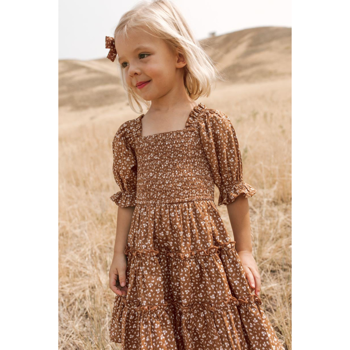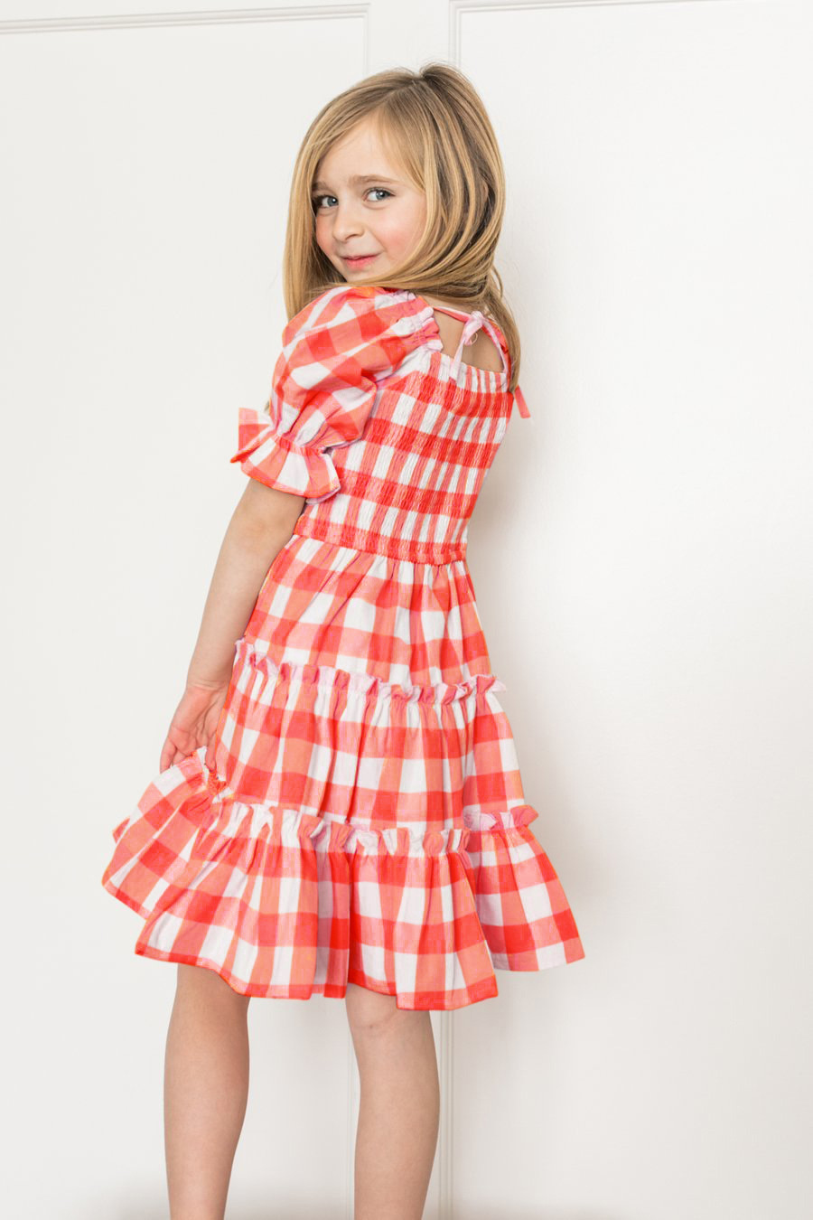 Girls Square Neck Lantern Short Sleeve Ruffle Pleated Princess Dress
