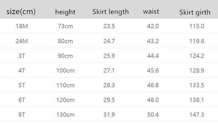 Reference height: 73 / 18M 80 / 24M 90 / 3T 100 / 4T 110 / 5T 120 / 6T 130 / 8T