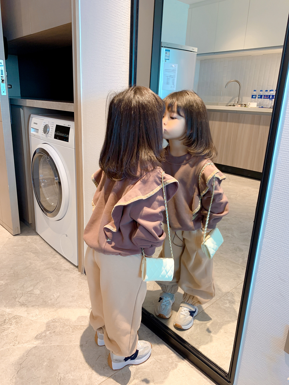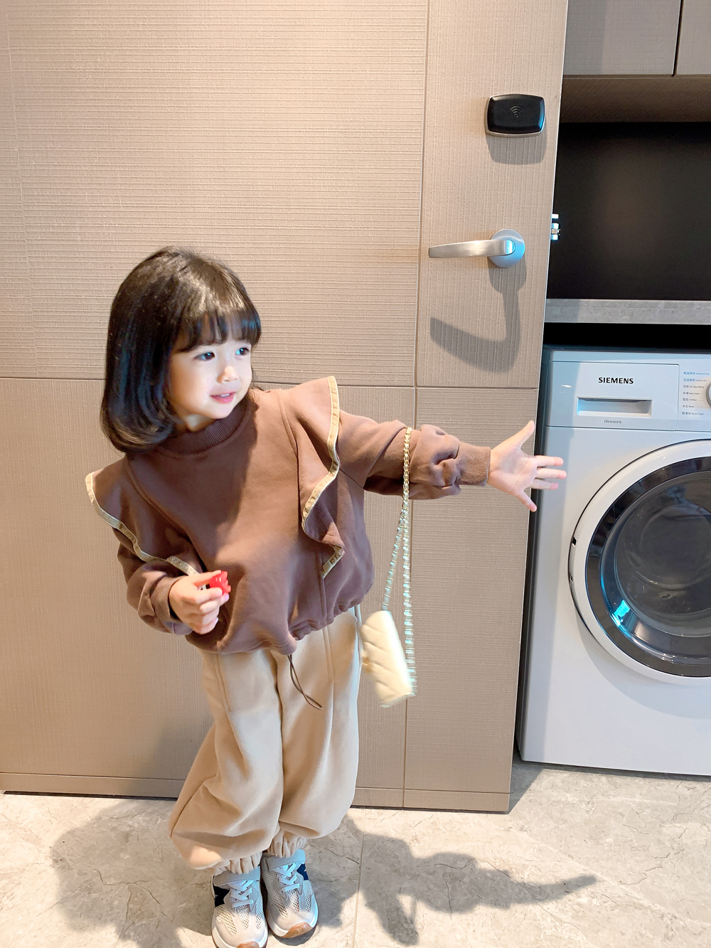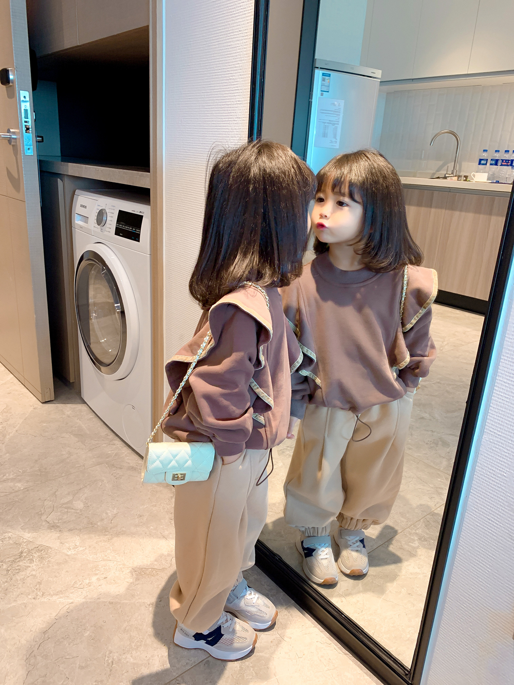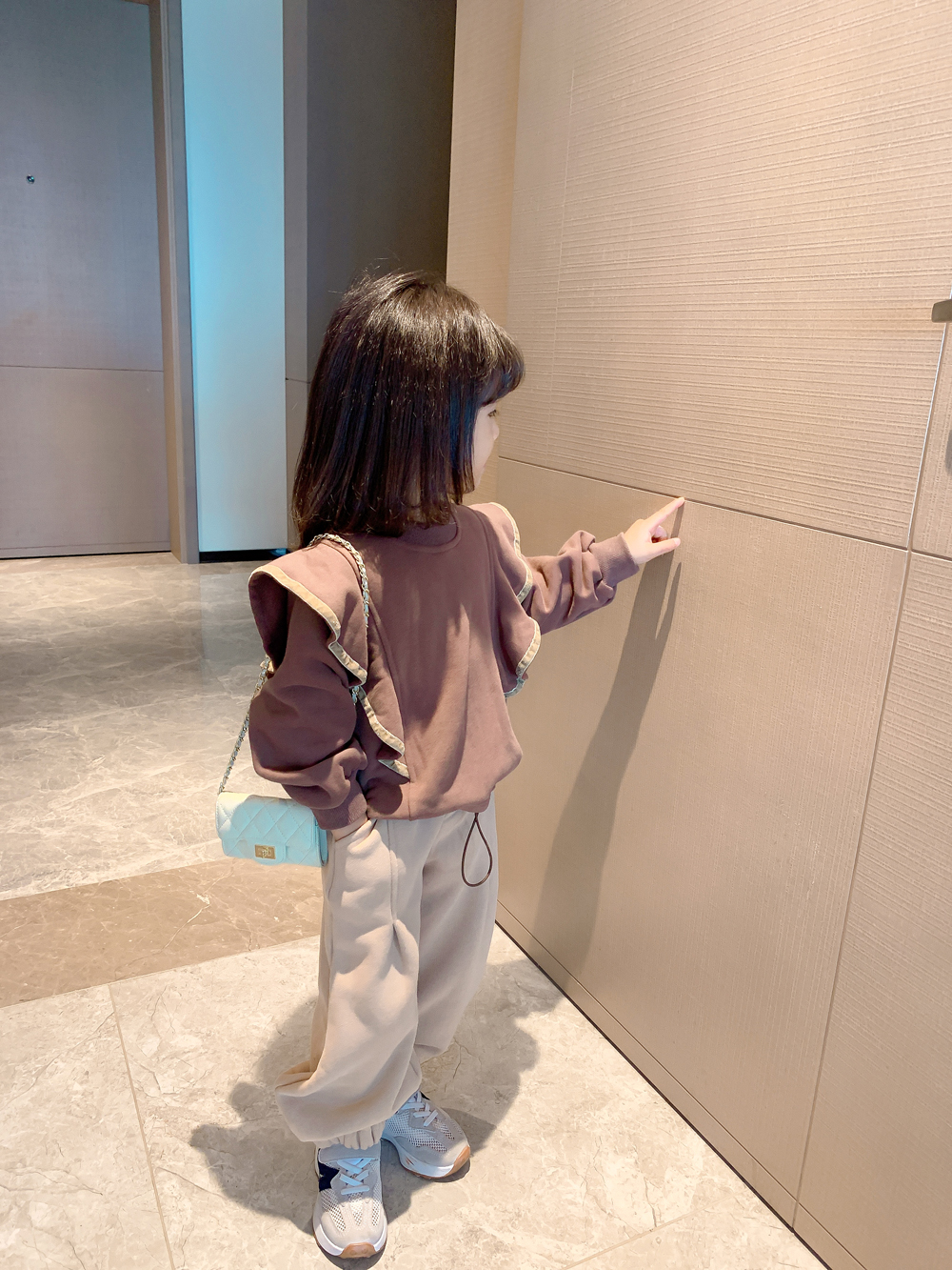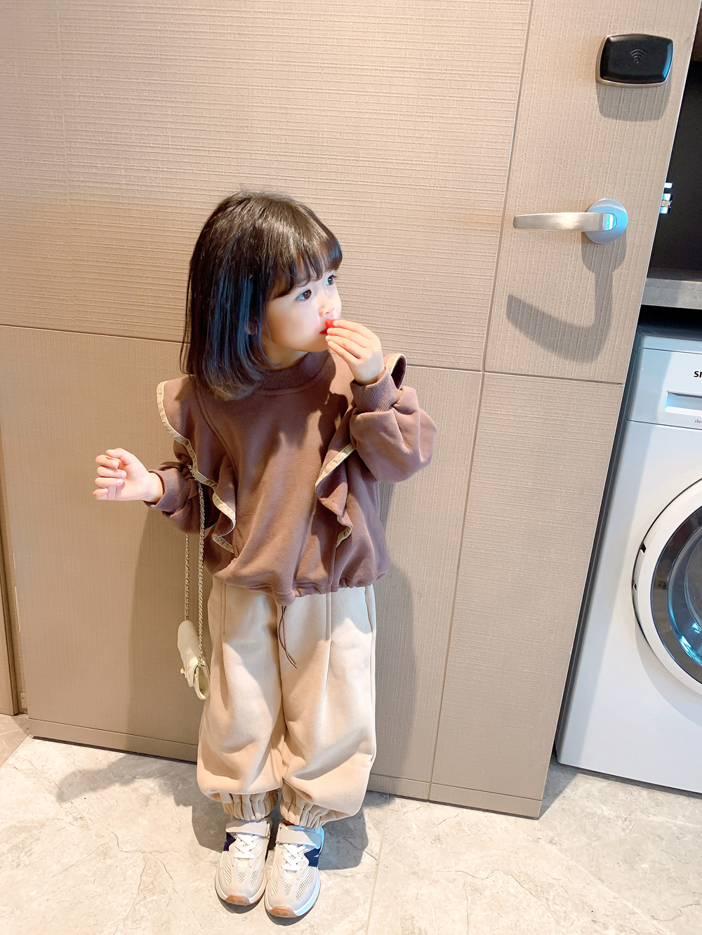 Color classification: coffee color sweater, apricot pants, sweater + pants