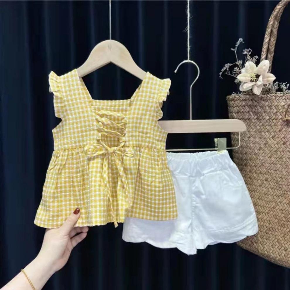 Color: Black [top pants suit], yellow [top pants suit], black top, yellow top, white shorts