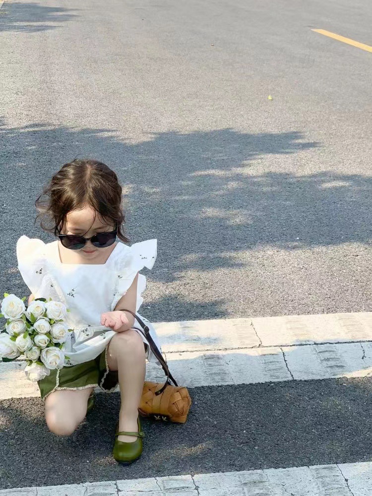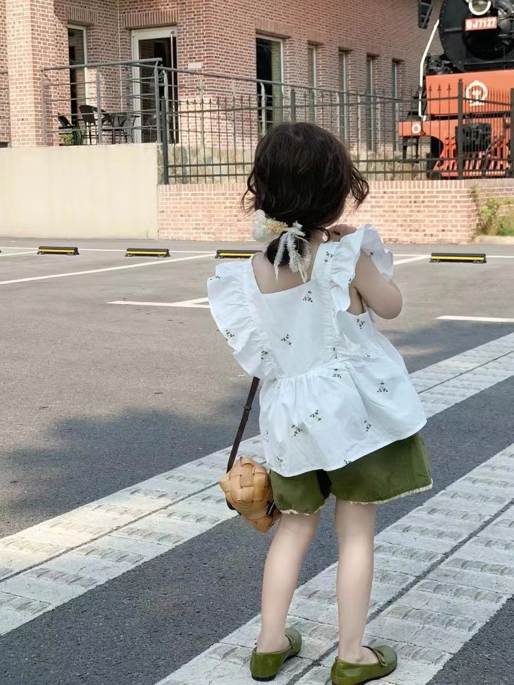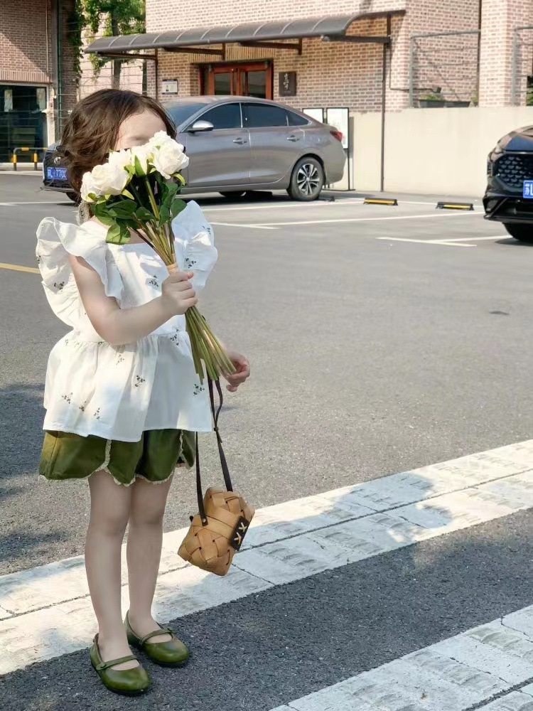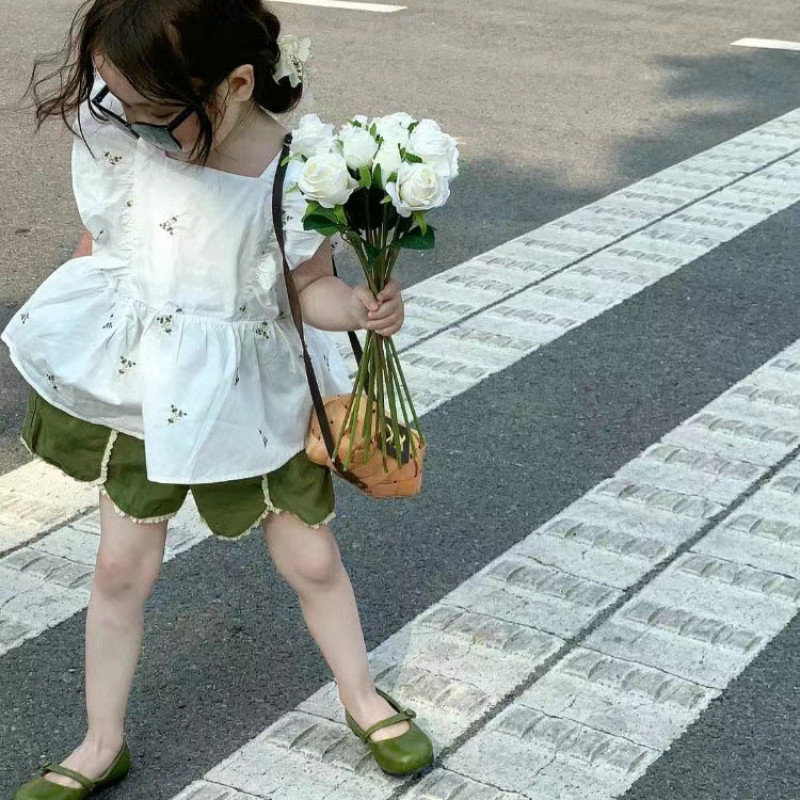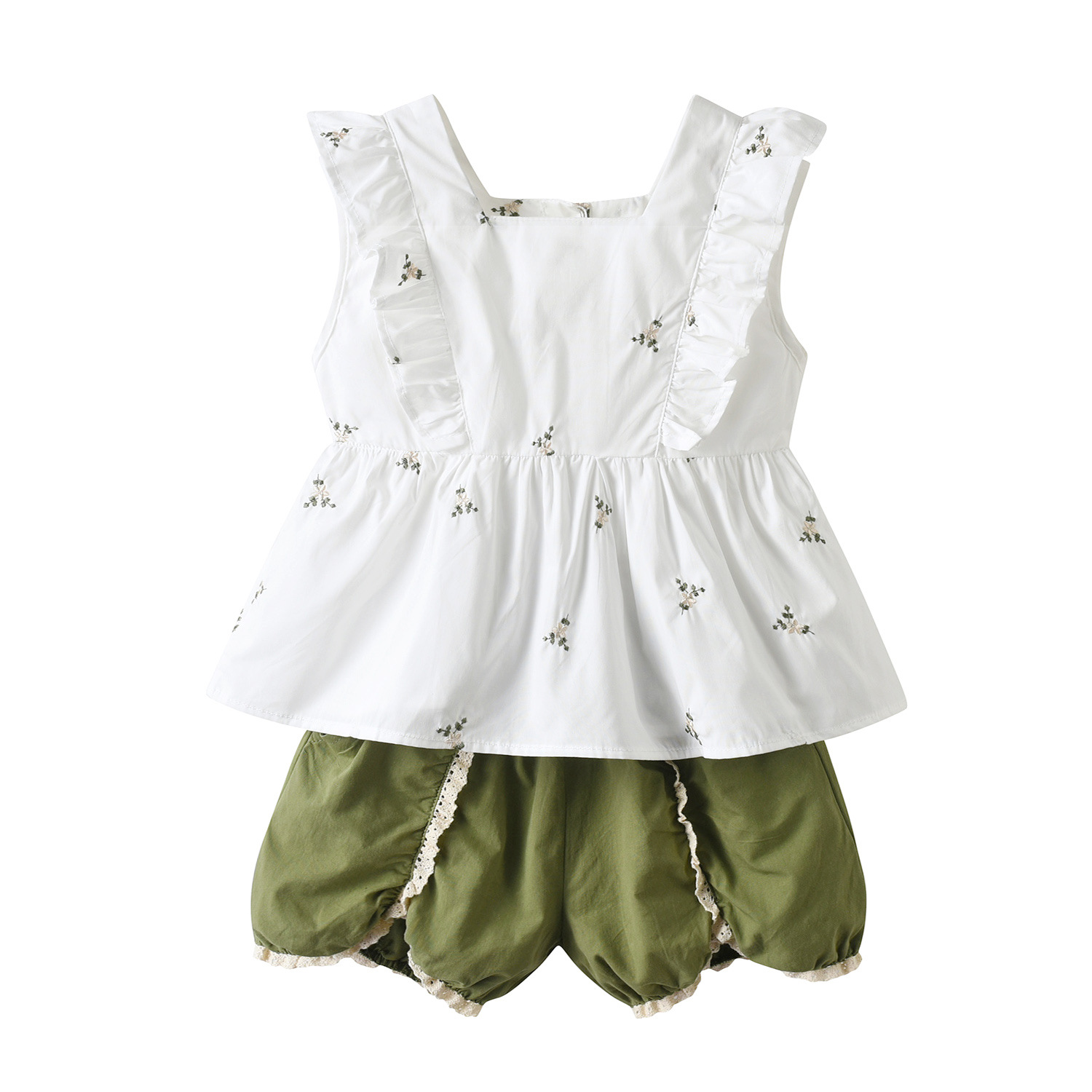Girls' Summer Suits Korean Style Western Style Lace Flounced Sleeve