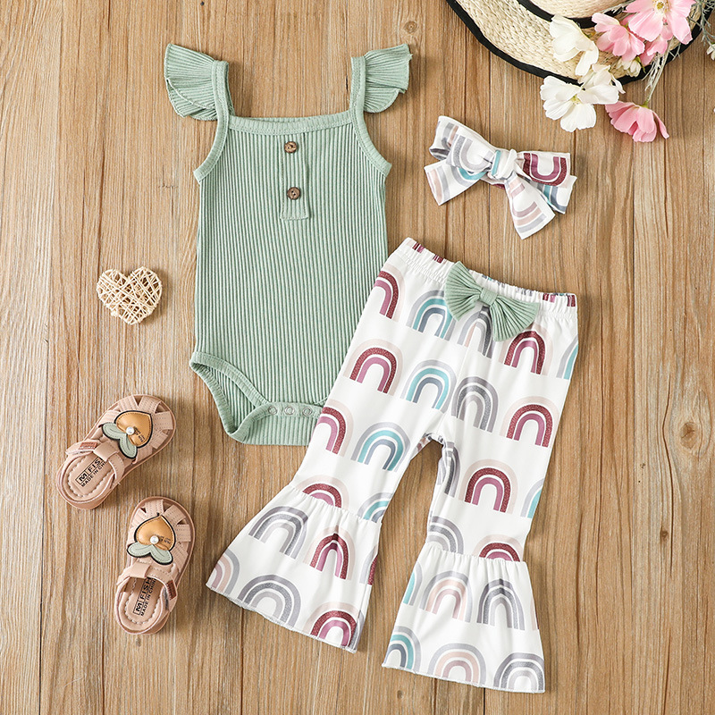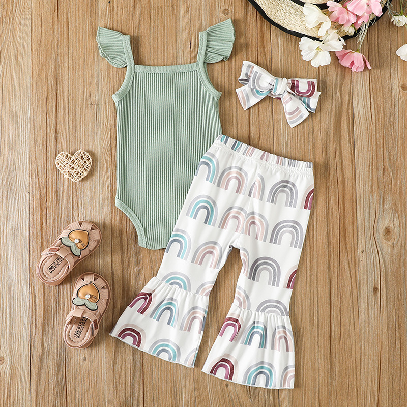 Girls Sunken Stripe Sling Romper Rainbow Printing Suit