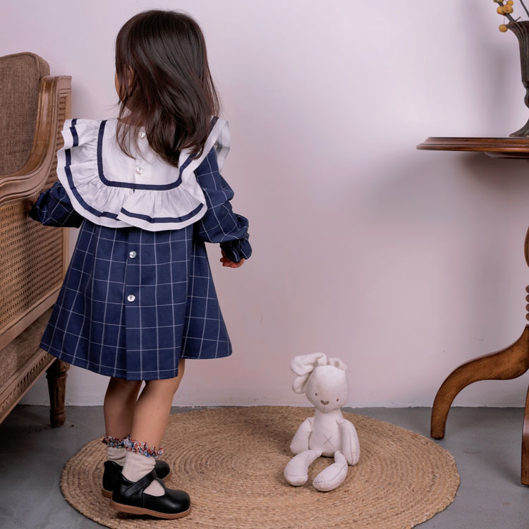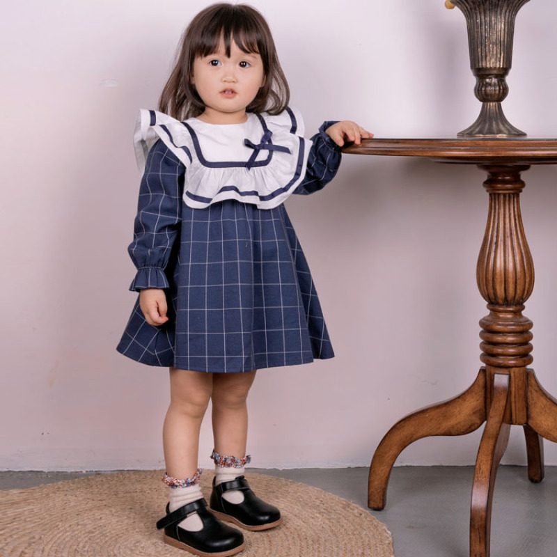 Girls Temperament Long Sleeve Bow Lace Dress
