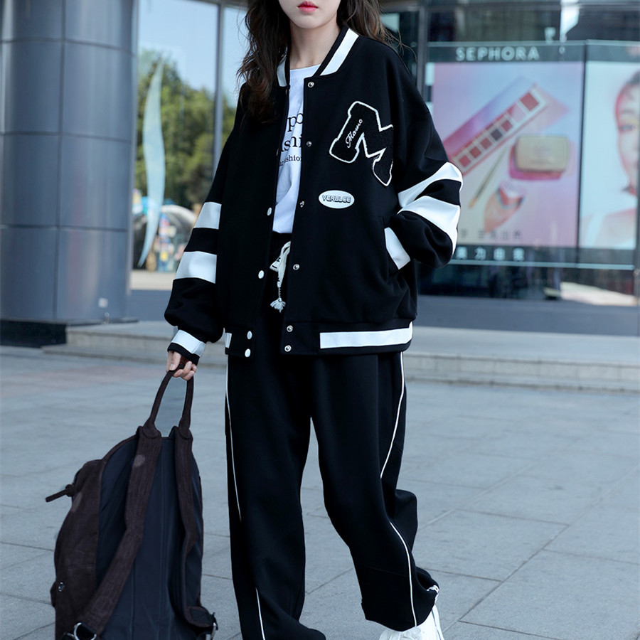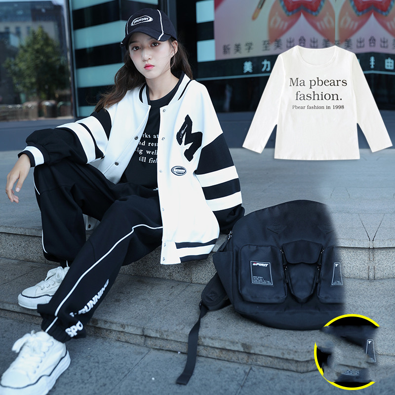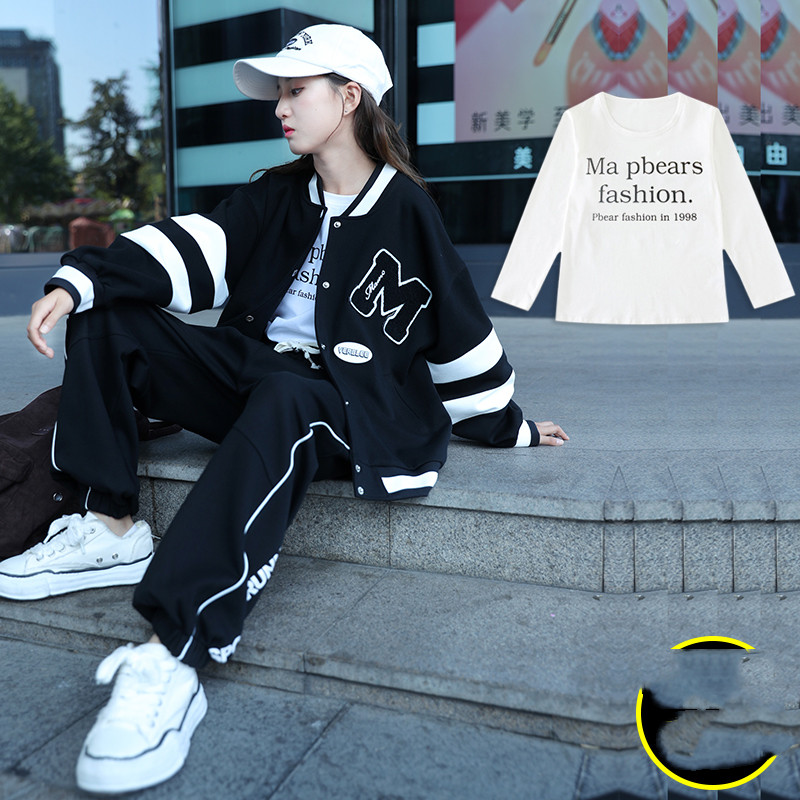 Color classification: [jacket + pants] black 2-piece set [jacket + pants] white 2-piece set [jacket + long-sleeved T-shirt + pants] black 3-piece set [jacket + long-sleeved T-shirt + pants] white 3-piece set