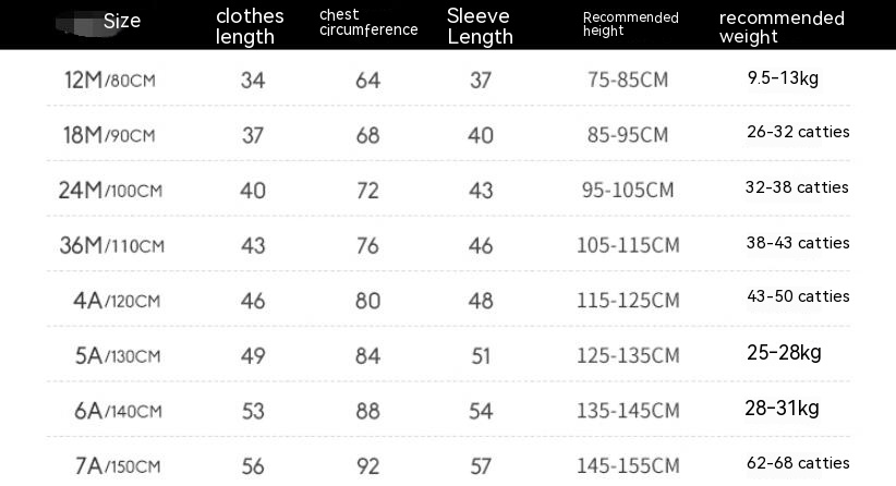 Reference height: 12M (80cm) 18M (90cm) 24M (100cm) 36M (110cm) 4A (120cm) 5A (130cm) 6A (140cm) 7A (150cm