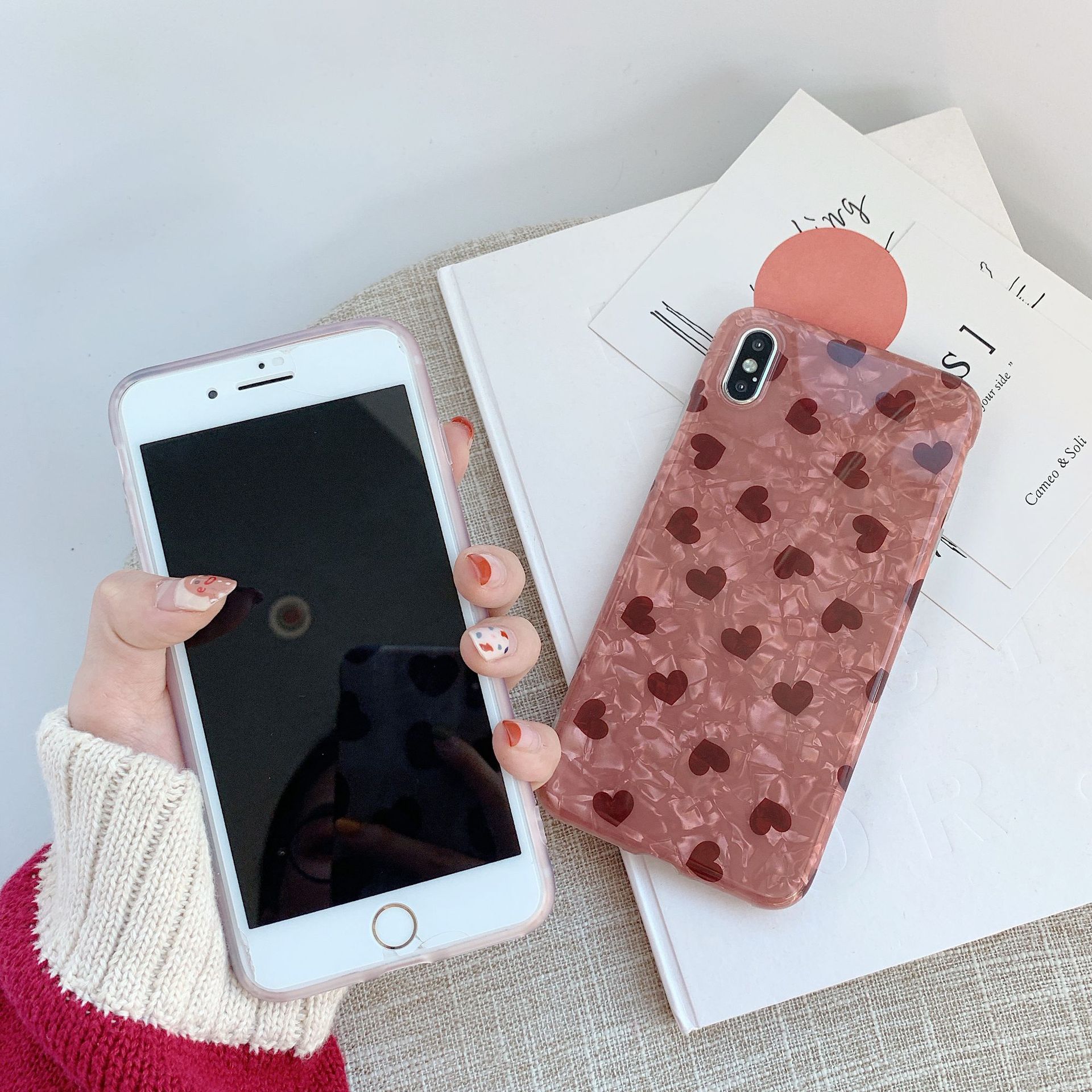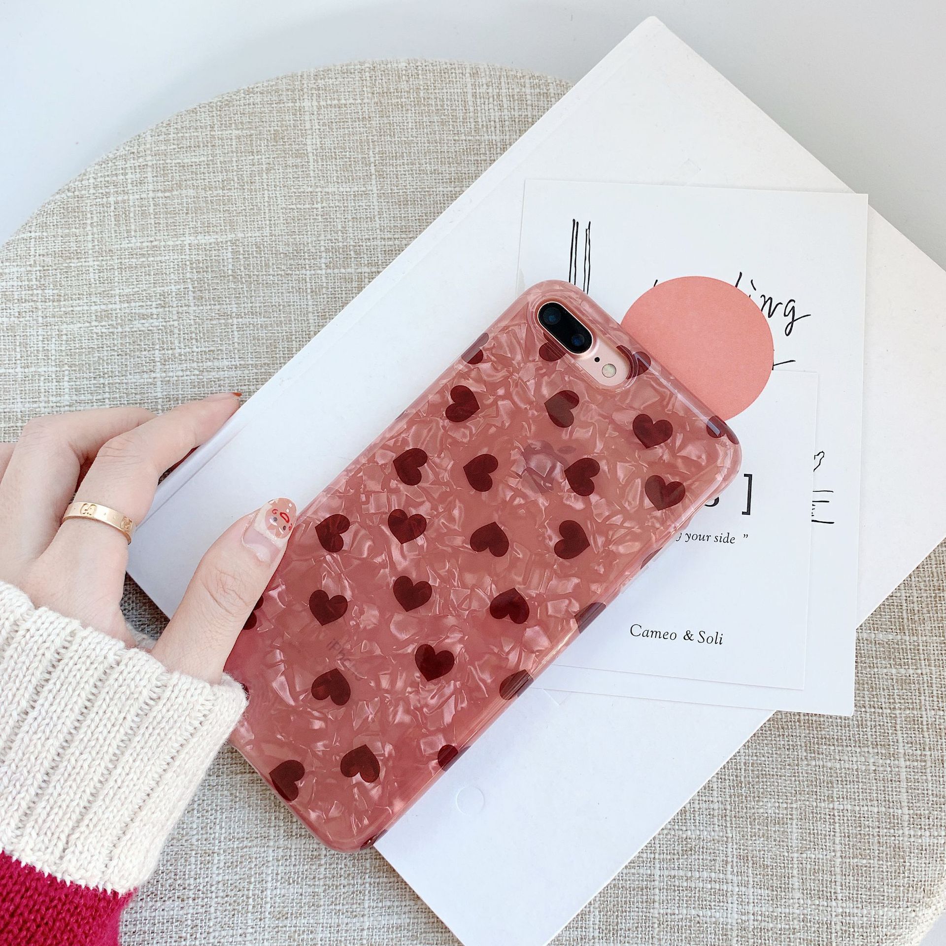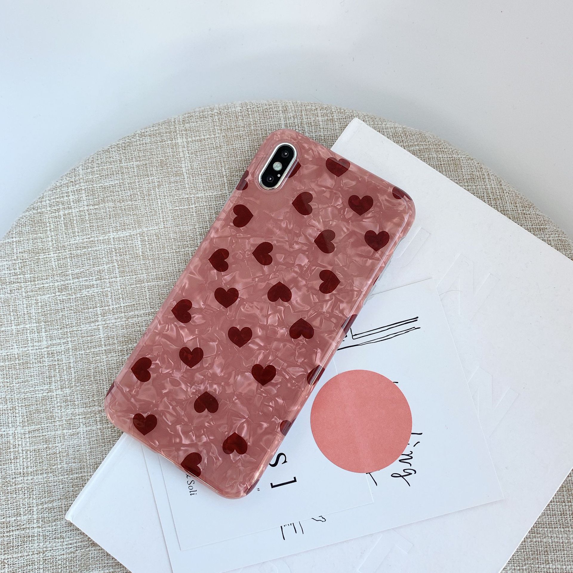 Style: back coverMaterial: tpuStyle: cartoonPopular elements: loveColor: Shell Orange Pink Love