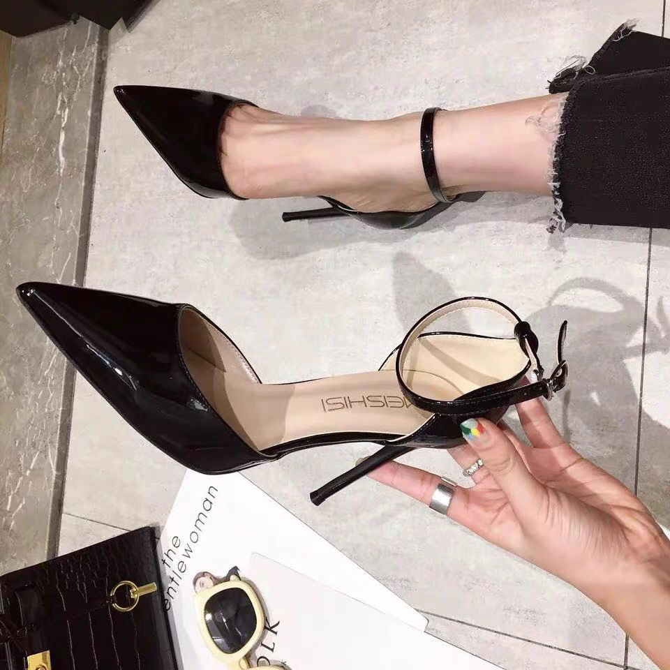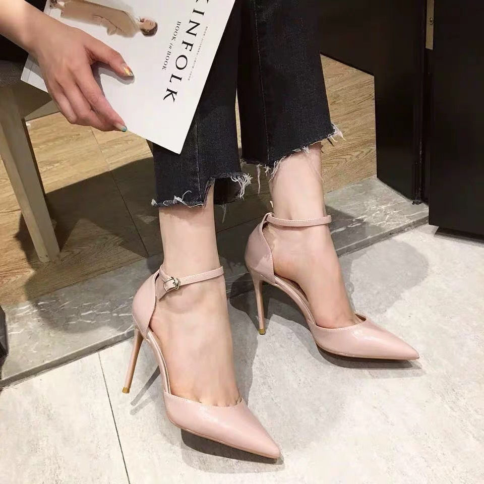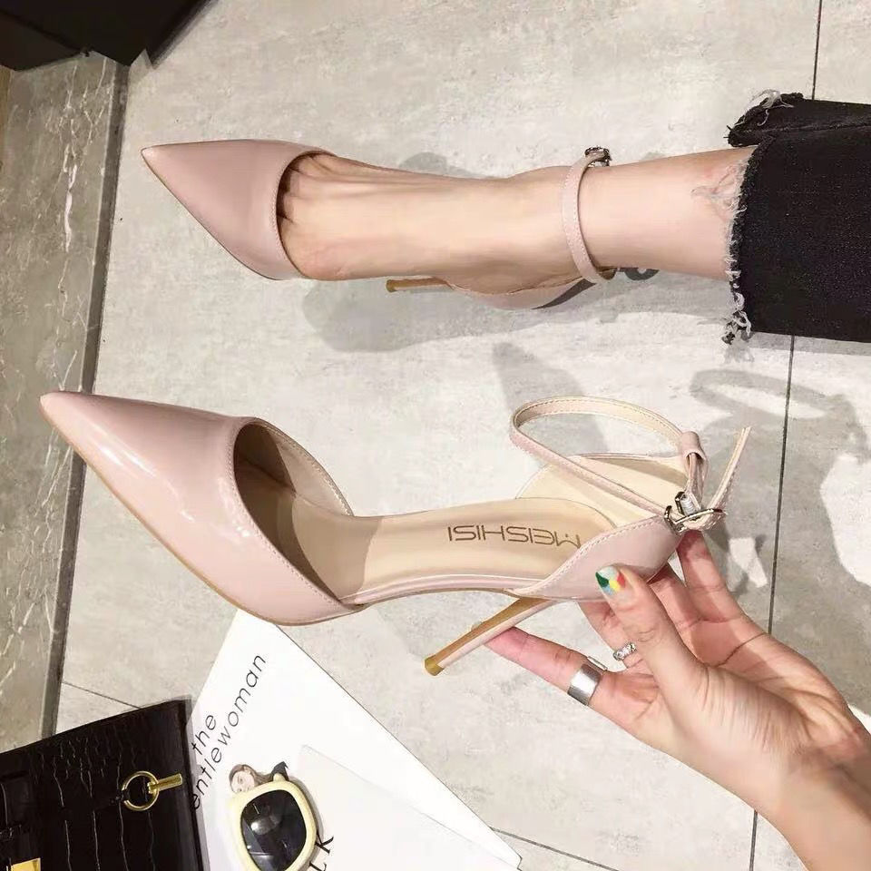 Girly Nude Stiletto Heel Pointed Toe Patent Leather Sandals