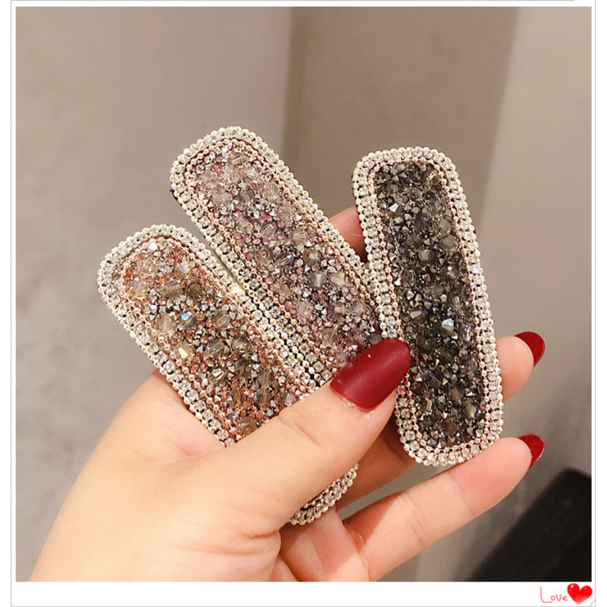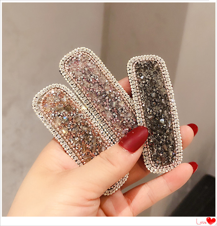 Girly Temperament Side Clip Net Red Rhinestone Broken Diamond Back Head