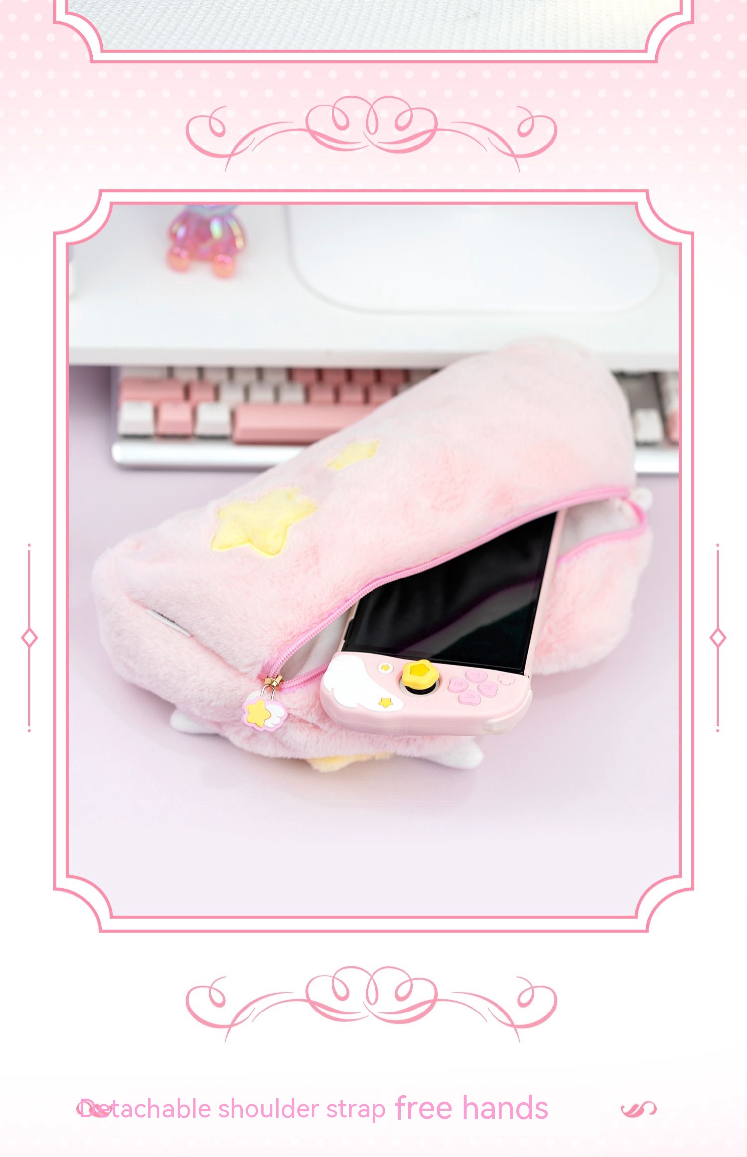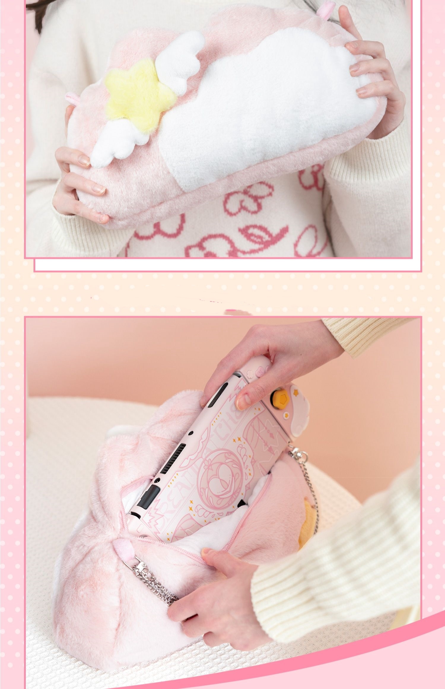 C: OLED version Star Wing Story Shell+Storage Bag+Cream Sweetheart Rocker Hat with White Bracket