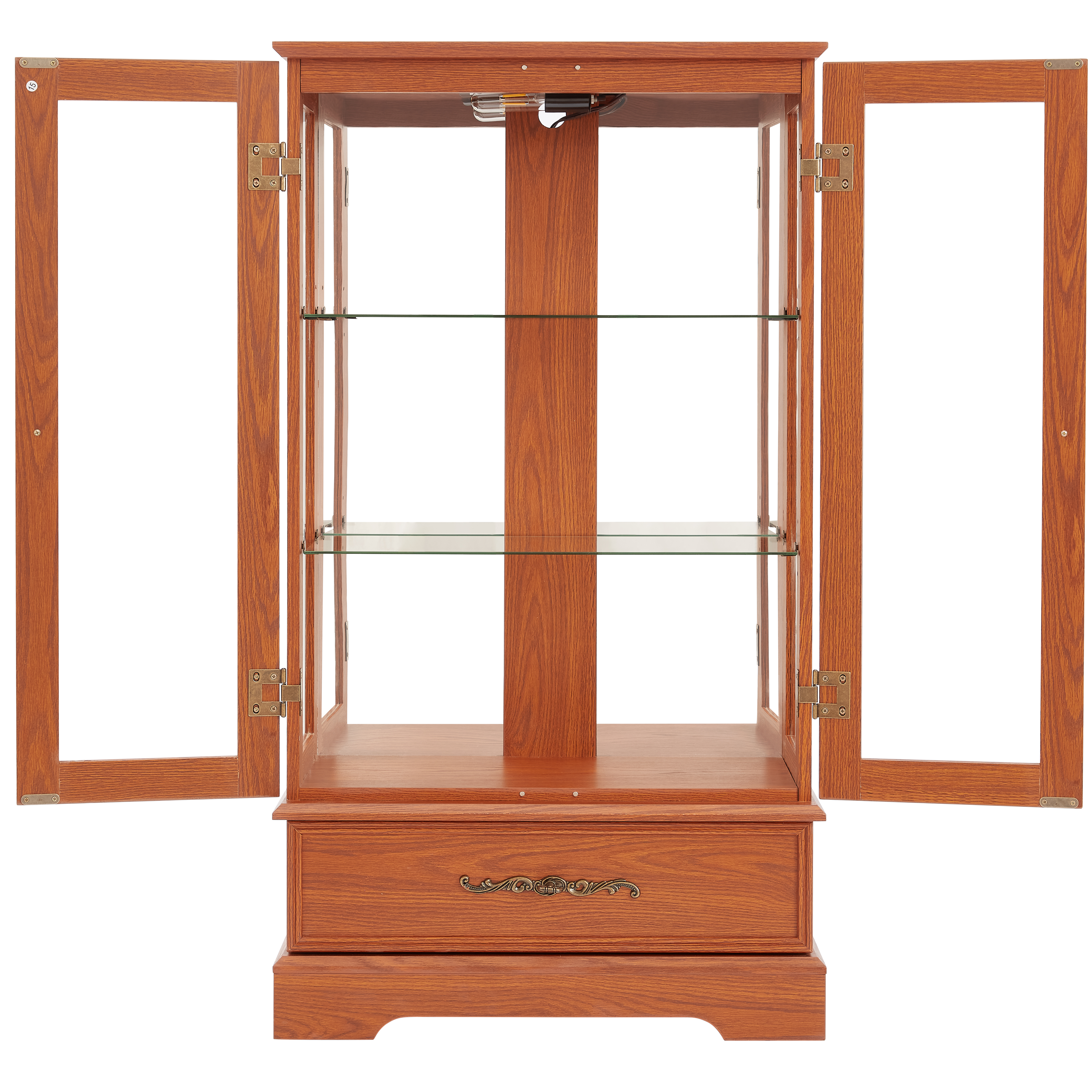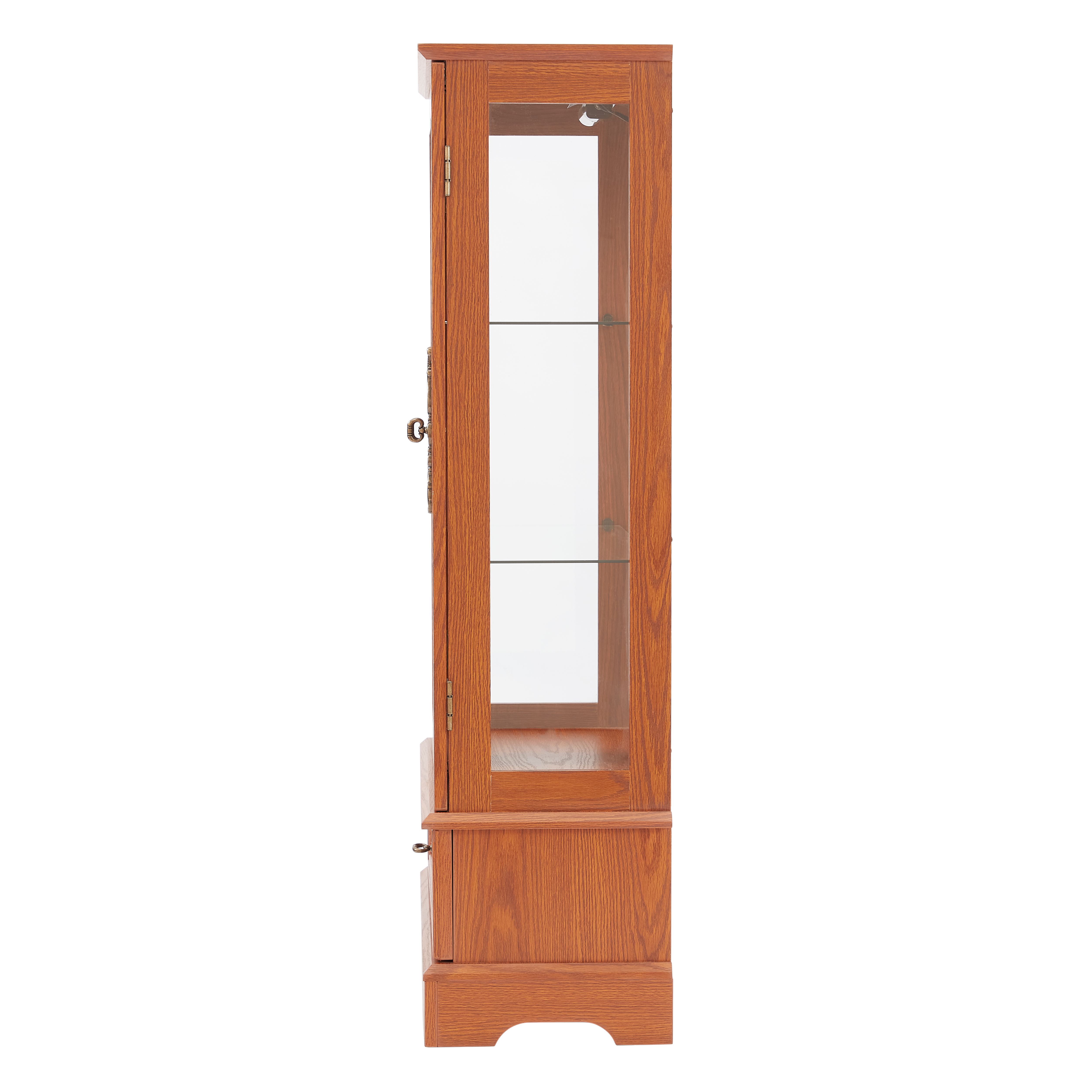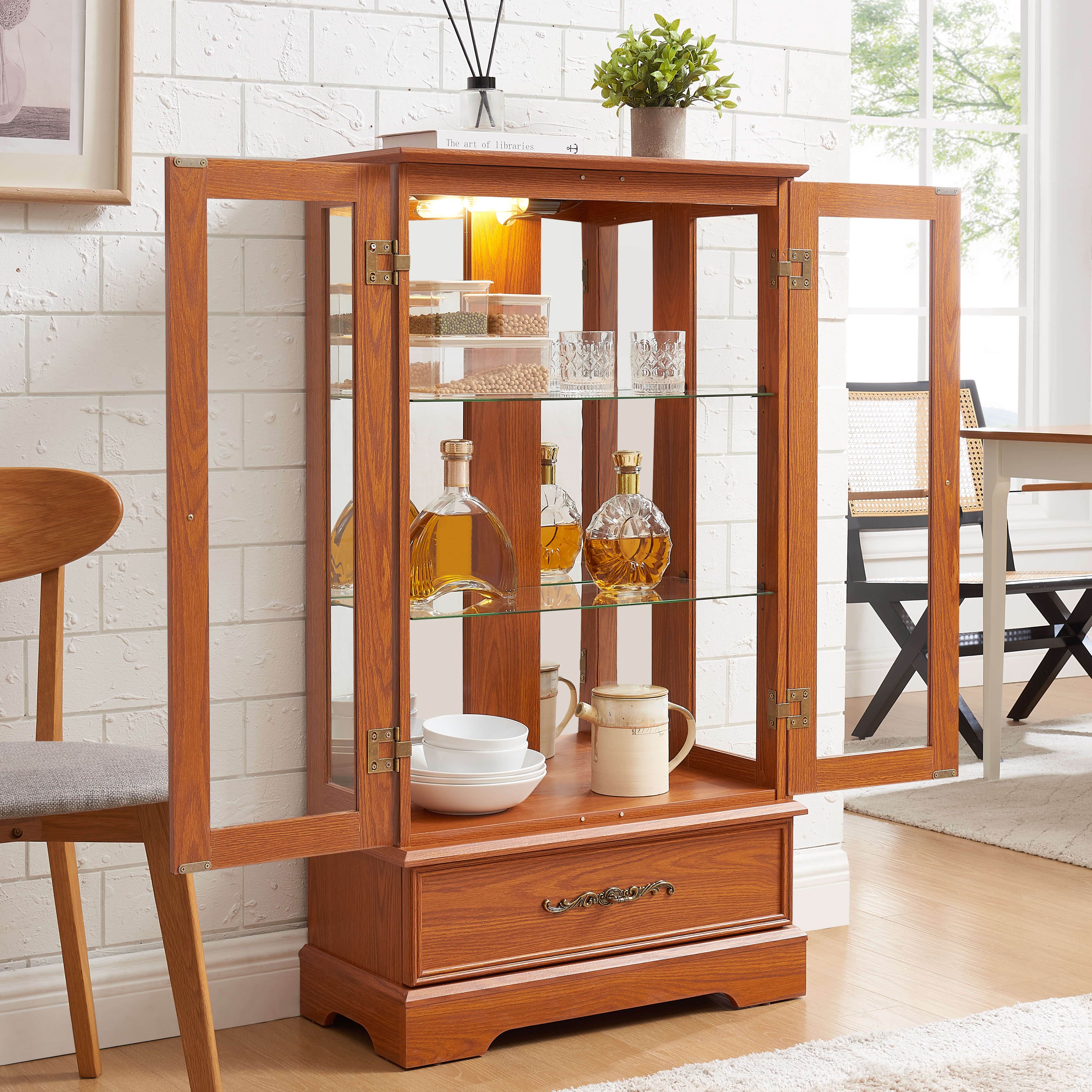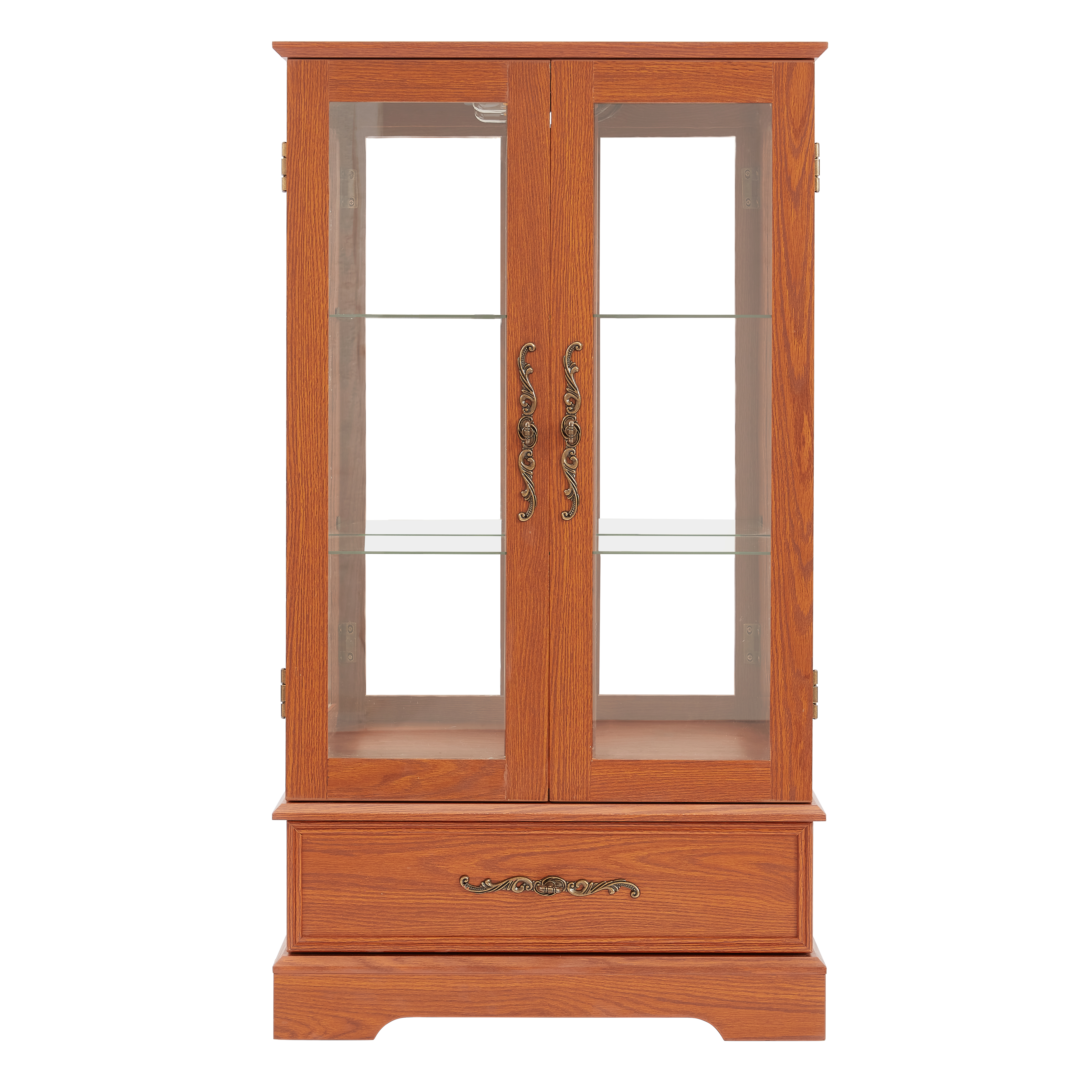 Product Name:Glass Cabinet Lighted Glass Cabinet Curio Display Cabinet with Adjustable Glass Shelves 2 Doors and 1 drawer Cabinet Bulb Included DARK OAK